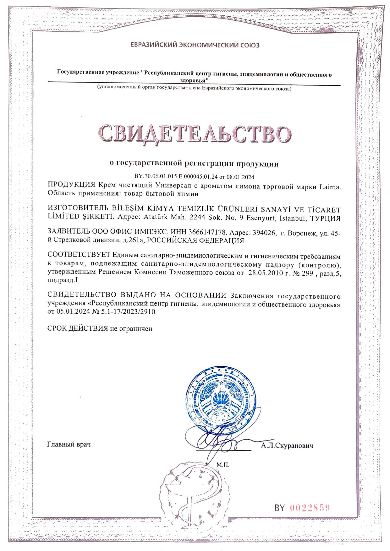 Чистящее средство универсальное крем 700 мл + 80 мл в подарок, LAIMA "Лимон", ТУРЦИЯ, 608662