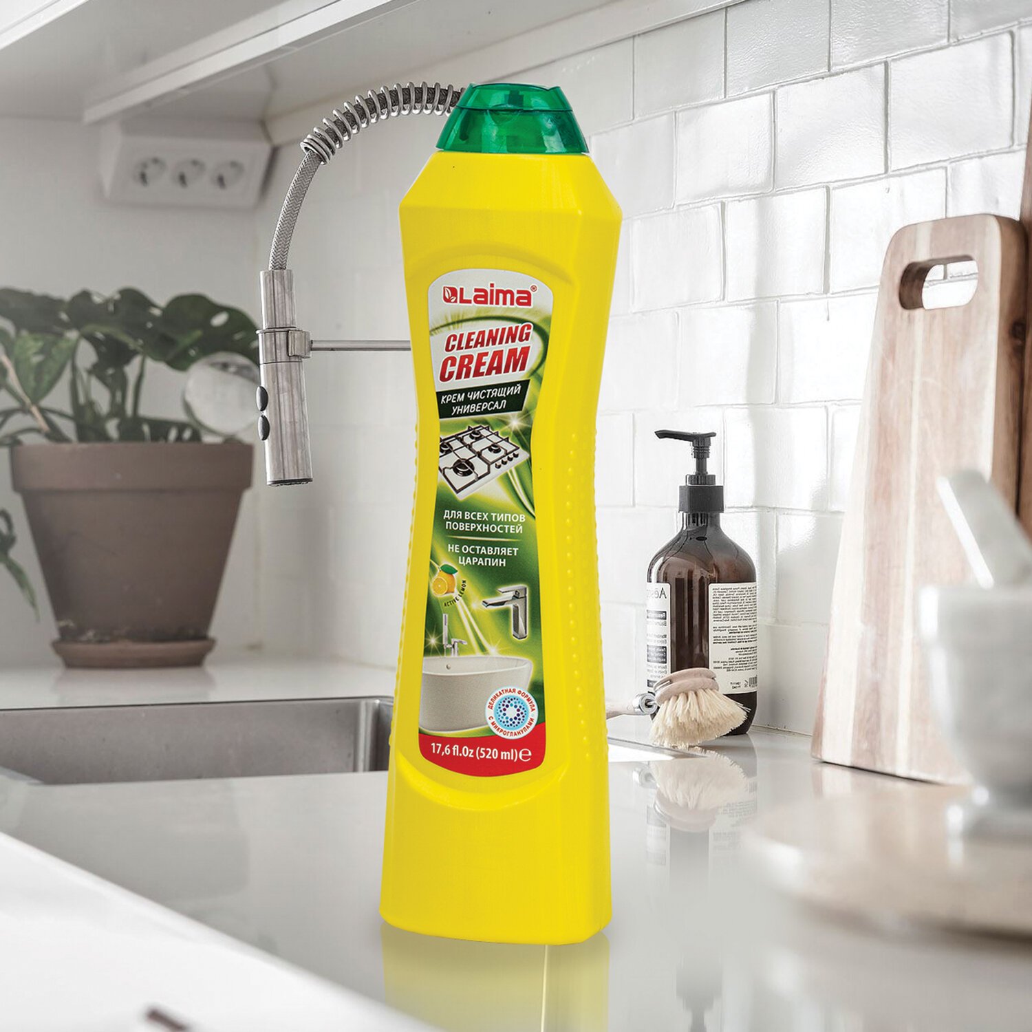 Благодаря специально разработанной формуле крем LAIMA очищает и полирует раковину, плитку, ванную, кафель и кухонные предметы, не царапая их.