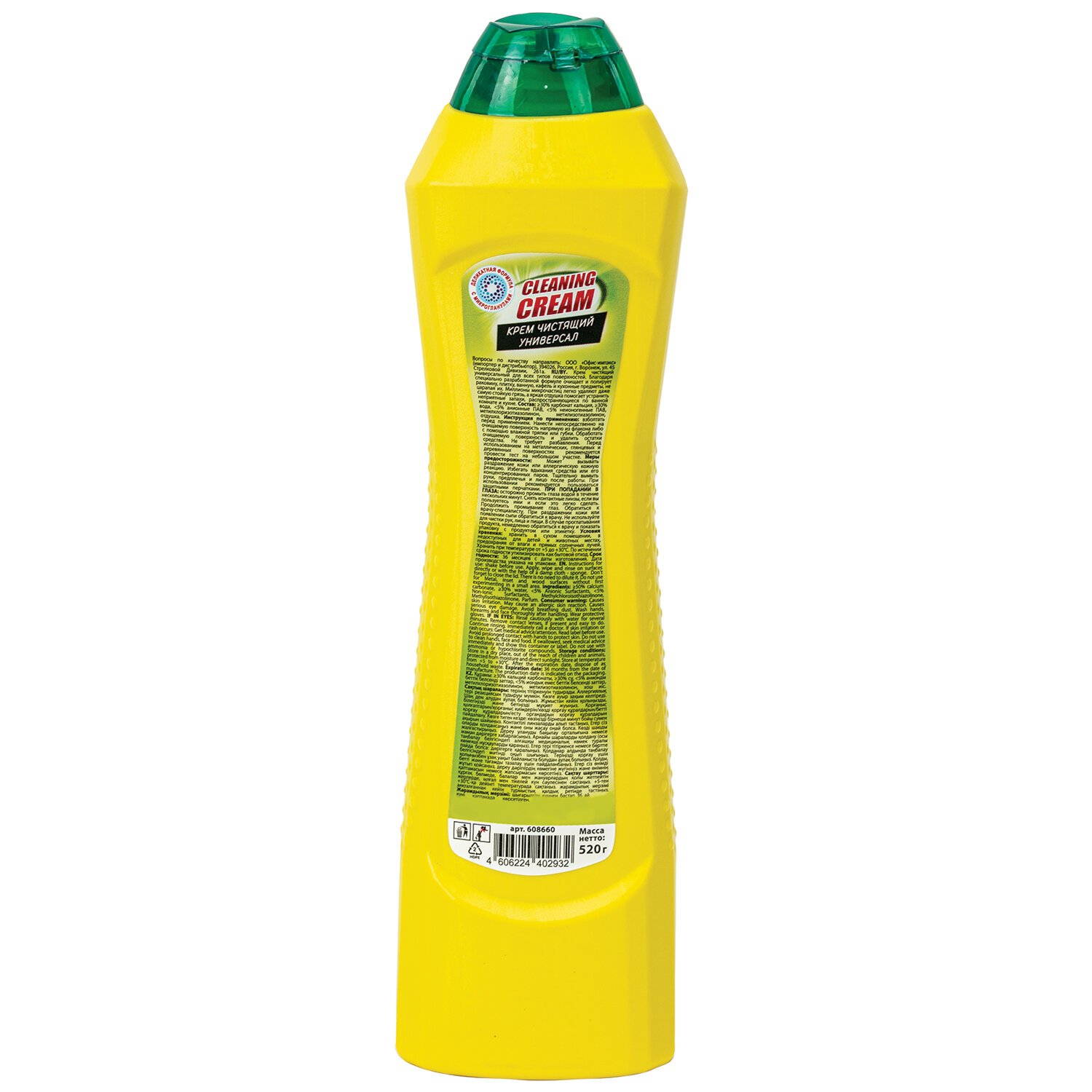 Чистящее средство универсальное крем 500 мл + 20 мл в подарок, LAIMA "Лимон", ТУРЦИЯ, 608660