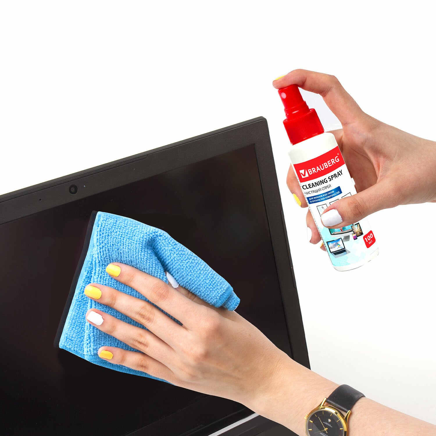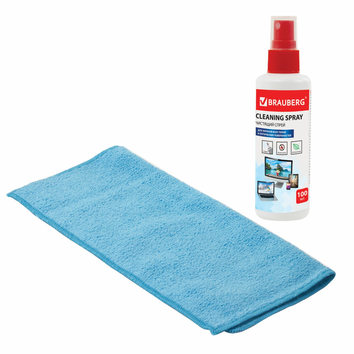 Чистящий набор для экранов всех типов и оптики BRAUBERG, комплект салфетка и спрей, 100 мл, 510341
