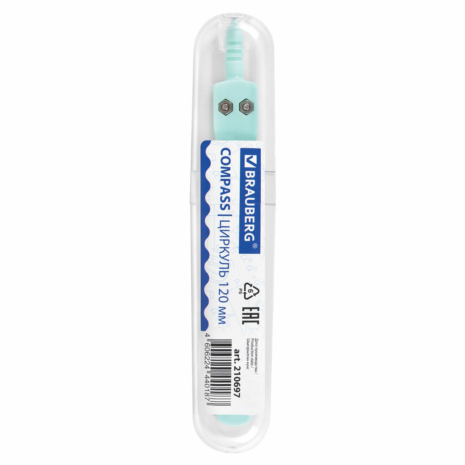 Циркуль BRAUBERG GEOMETRY, 120 мм, пастельно-бирюзовый цвет, защитный колпачок, пластиковый пенал, 210697