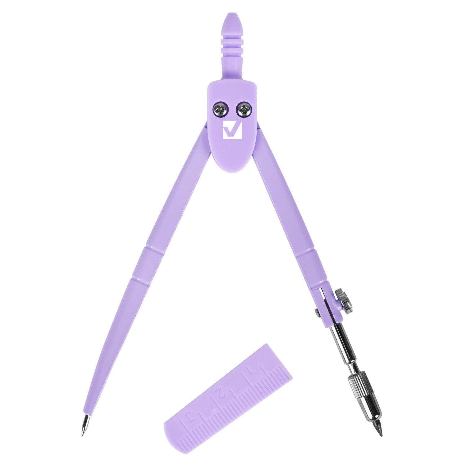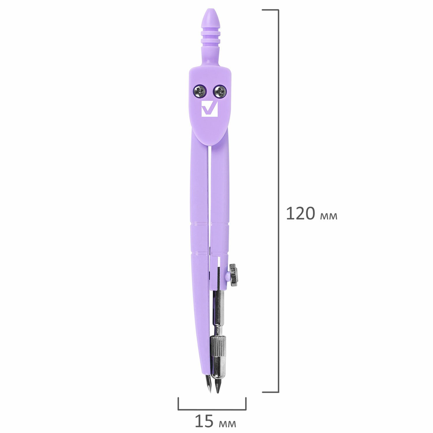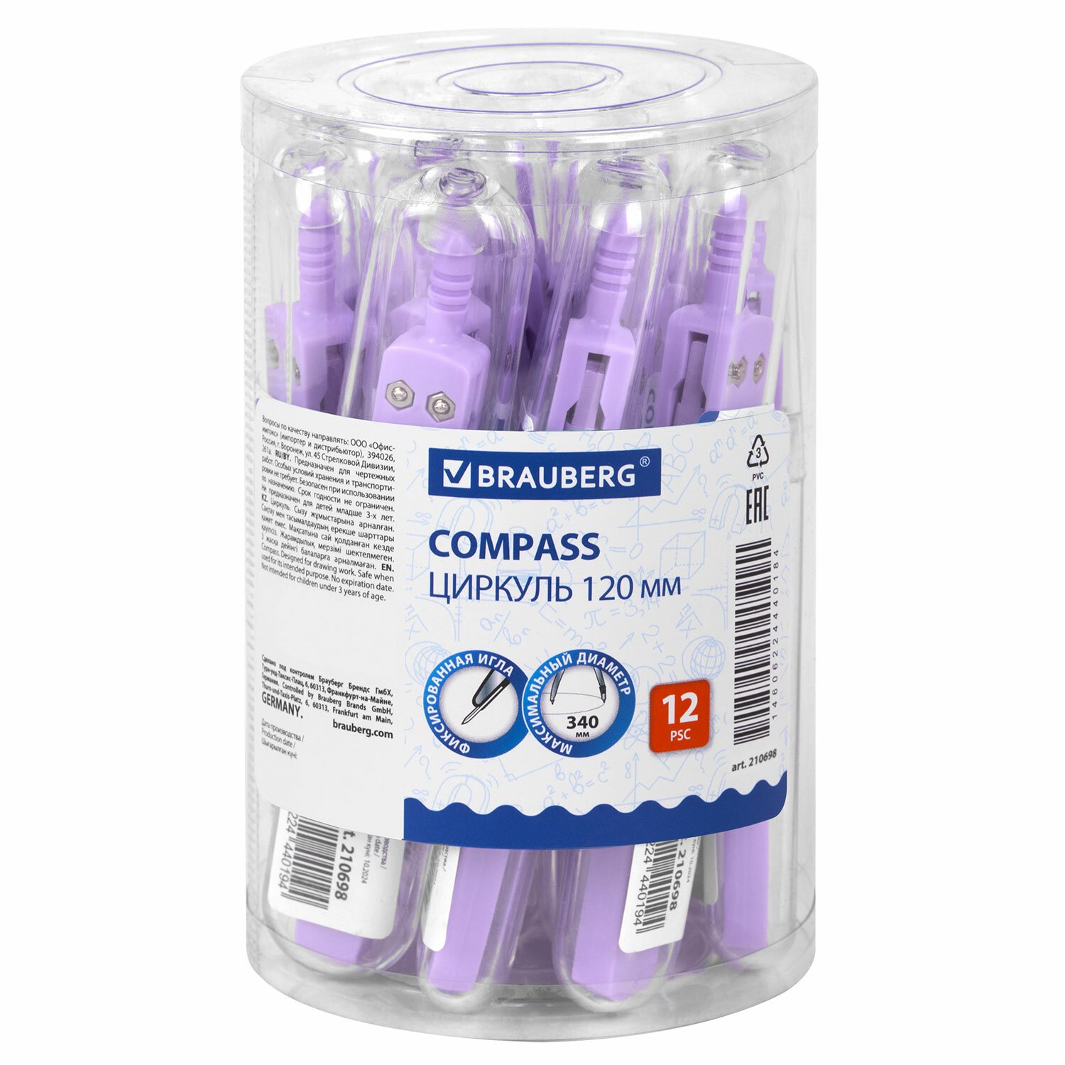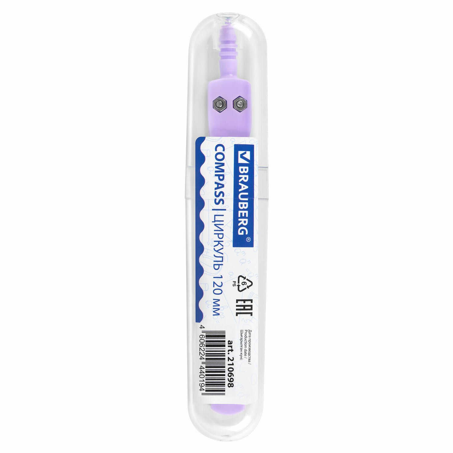 Циркуль BRAUBERG GEOMETRY, 120 мм, пастельно-фиолетовый цвет, защитный колпачок, пластиковый пенал, 210698