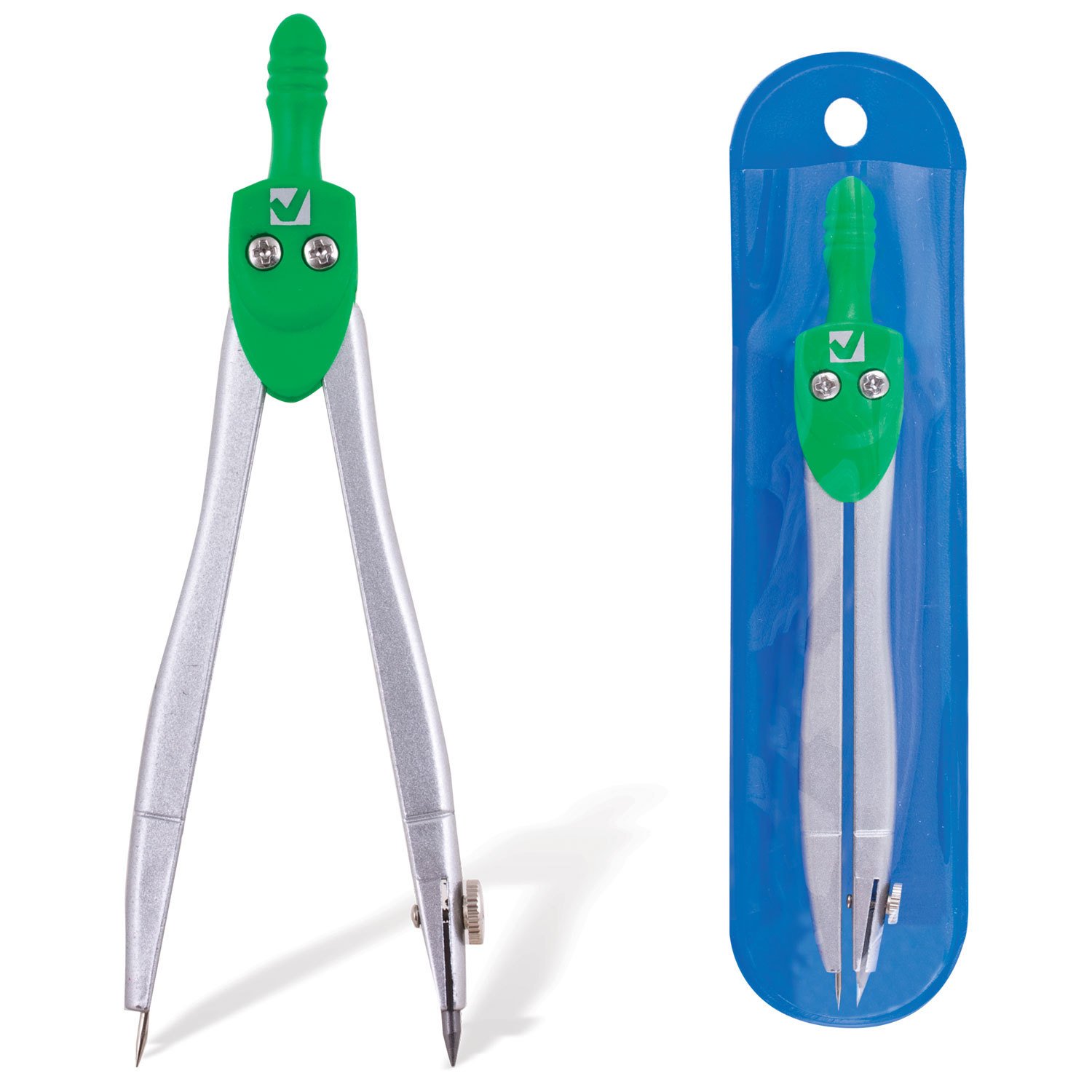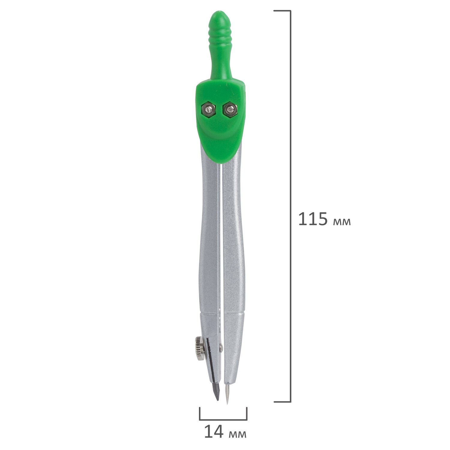 Циркуль BRAUBERG GEOMETRY, 120 мм, пастельно-зеленый цвет, защитный колпачок, пластиковый пенал, 210699
