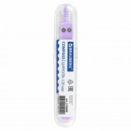 Циркуль BRAUBERG GEOMETRY, 120 мм, пастельно-фиолетовый цвет, защитный колпачок, пластиковый пенал, 210698