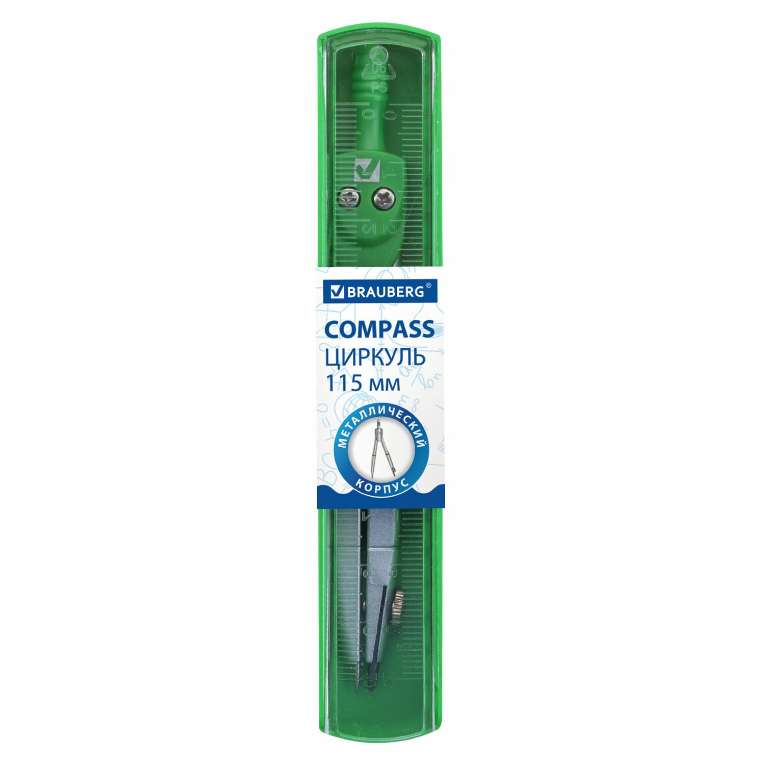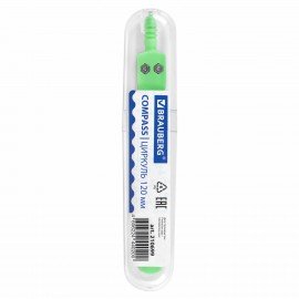Циркуль BRAUBERG GEOMETRY, 120 мм, пастельно-зеленый цвет, защитный колпачок, пластиковый пенал, 210699