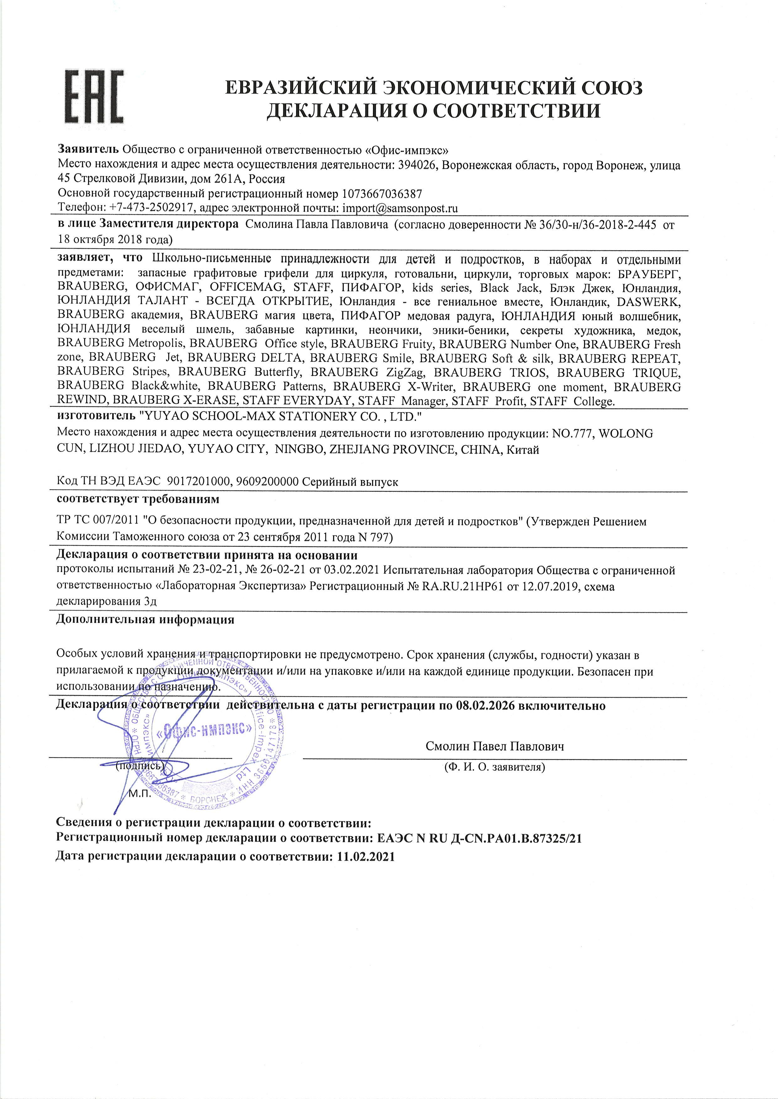 Циркуль BRAUBERG "Klasse", 125 мм, туба, классный, 210314