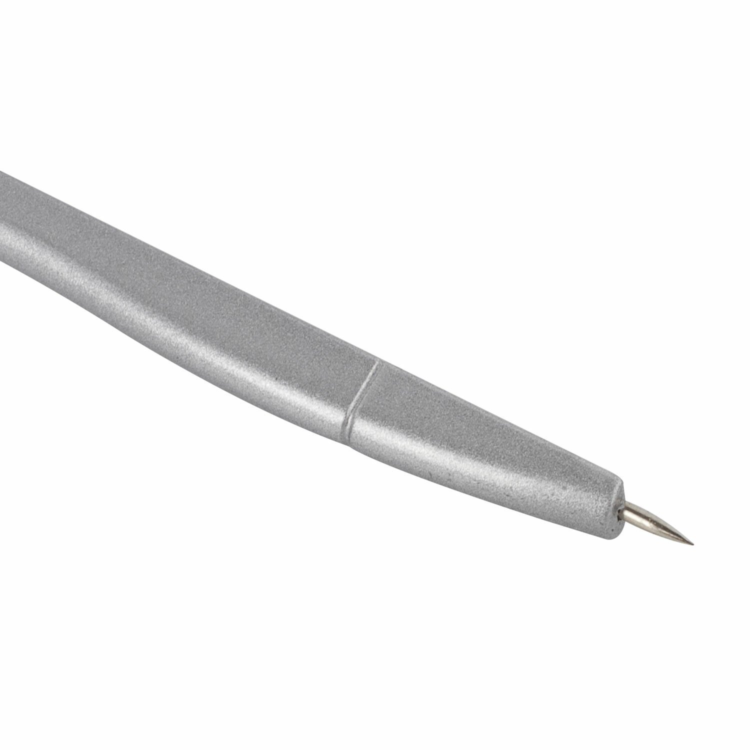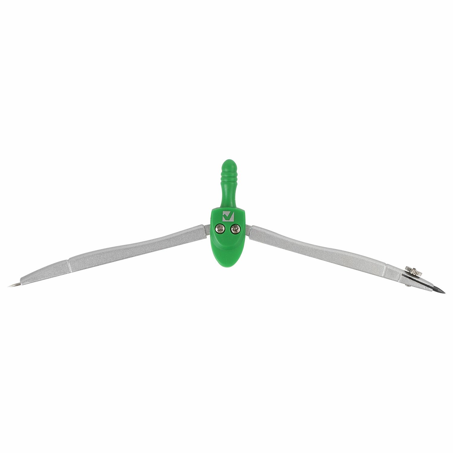 Инструмент длиной 115 мм имеет несгибаемые штанги. Изготовлен из металла, дополнительный цвет - зеленый. Поставляется в пластиковом пенале с прозрачной крышкой-линейкой.