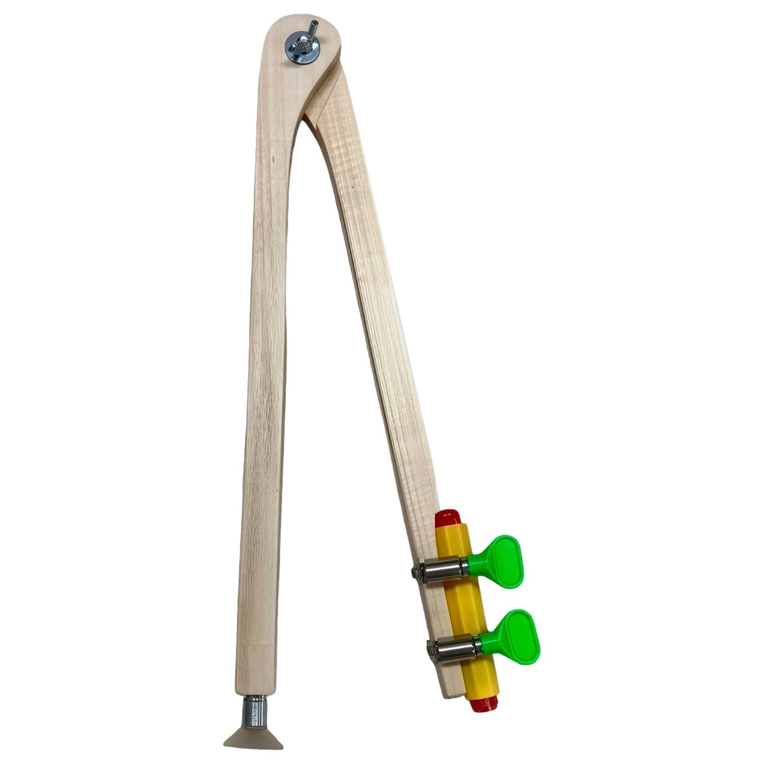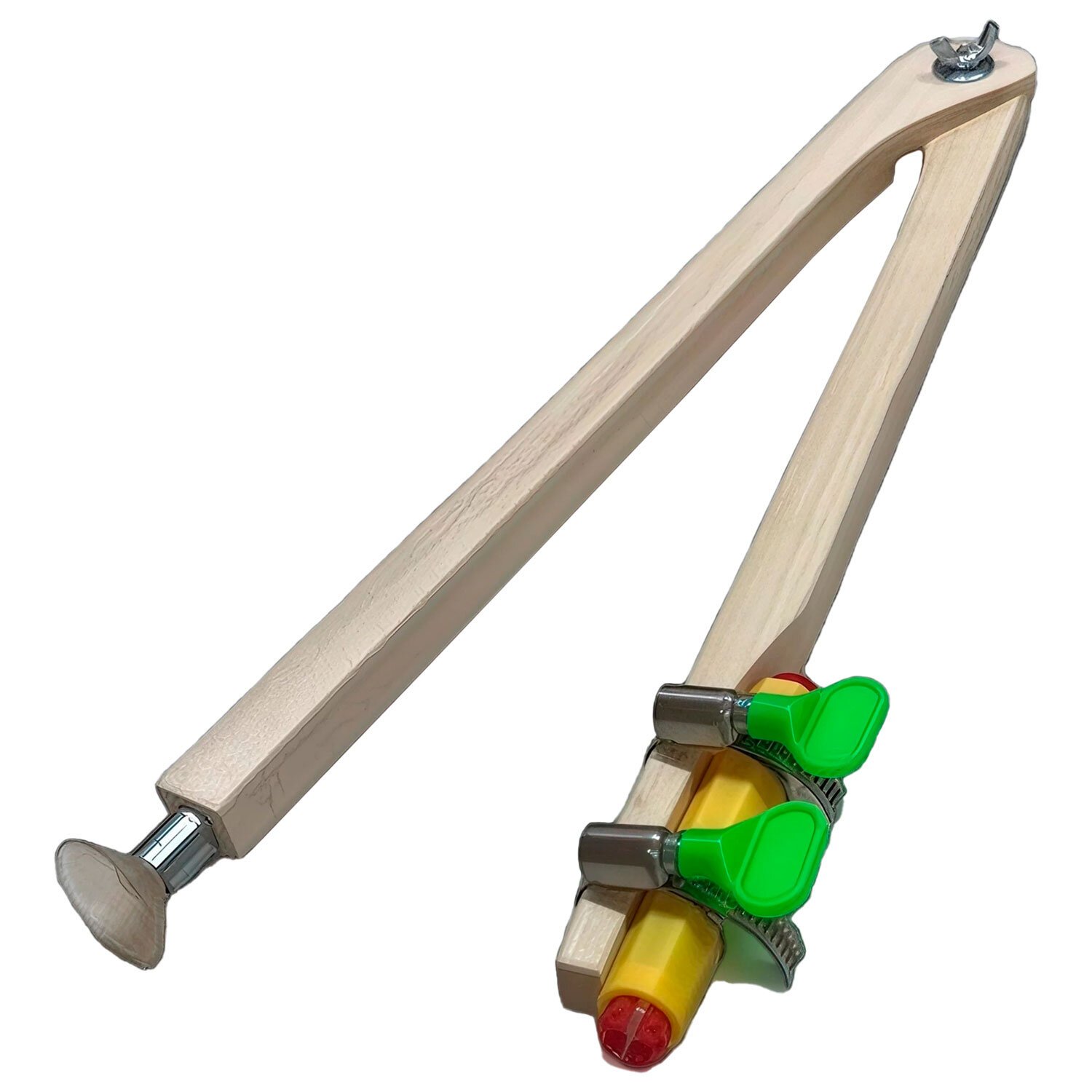 Деревянный циркуль с конструкцией, позволяющей проводить чертежные работы на школьной доске.