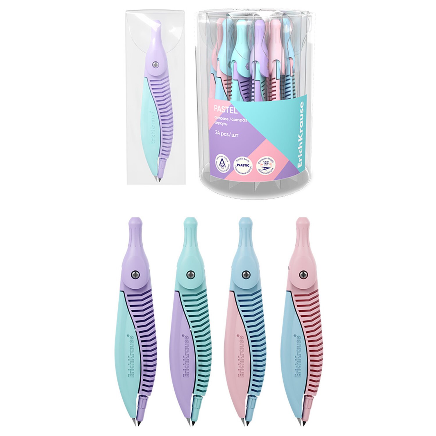 Циркуль пластиковый ErichKrause Pastel, 122мм, ПВХ чехол, ассорти.