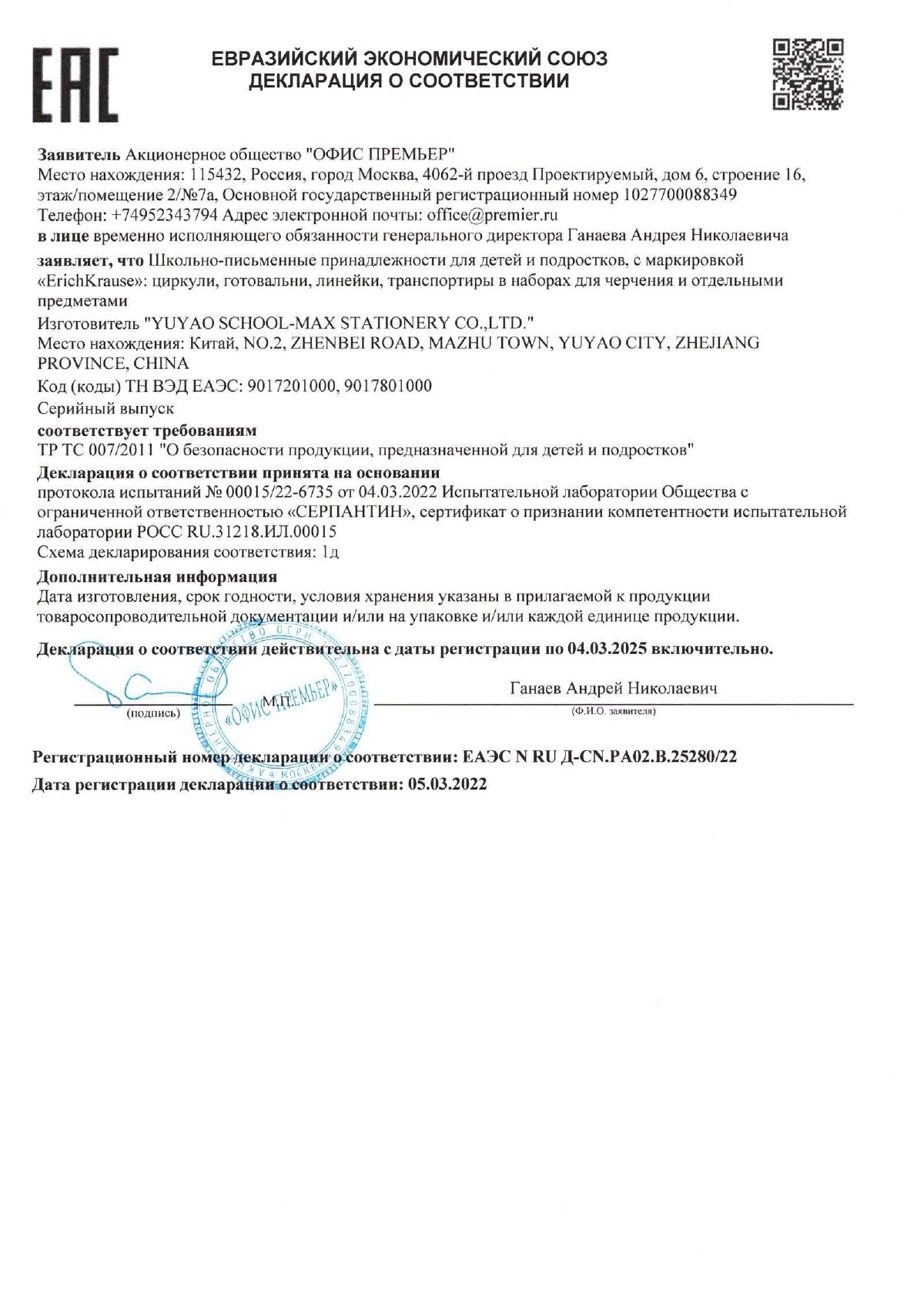 Циркуль ERICH KRAUSE "School", 120 мм, туба, ассорти, дисплей, 31526
