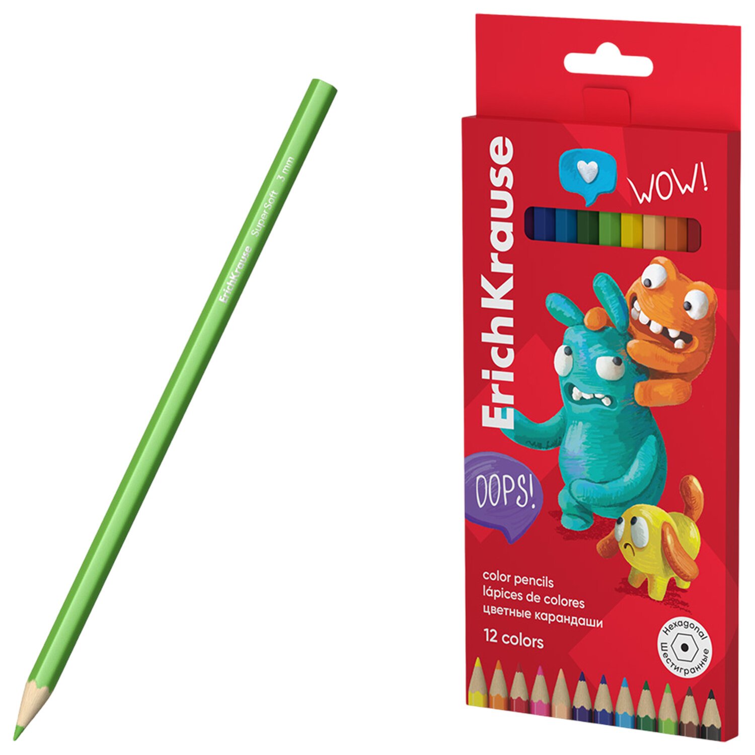 Цветные карандаши ERICH KRAUSE Jolly Friends, 12 цветов, шестигранные, натуральное де, 61792