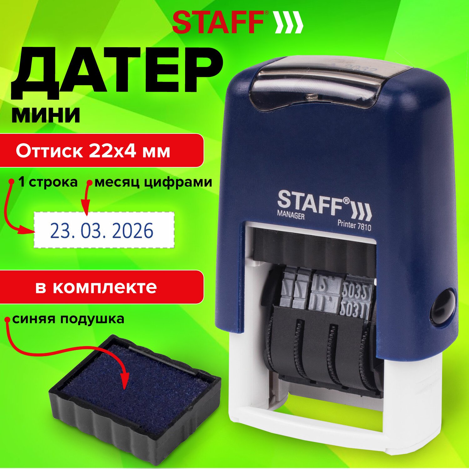 Датер-мини STAFF, месяц буквами, оттиск 22х4 мм, "Printer 7810", 237432