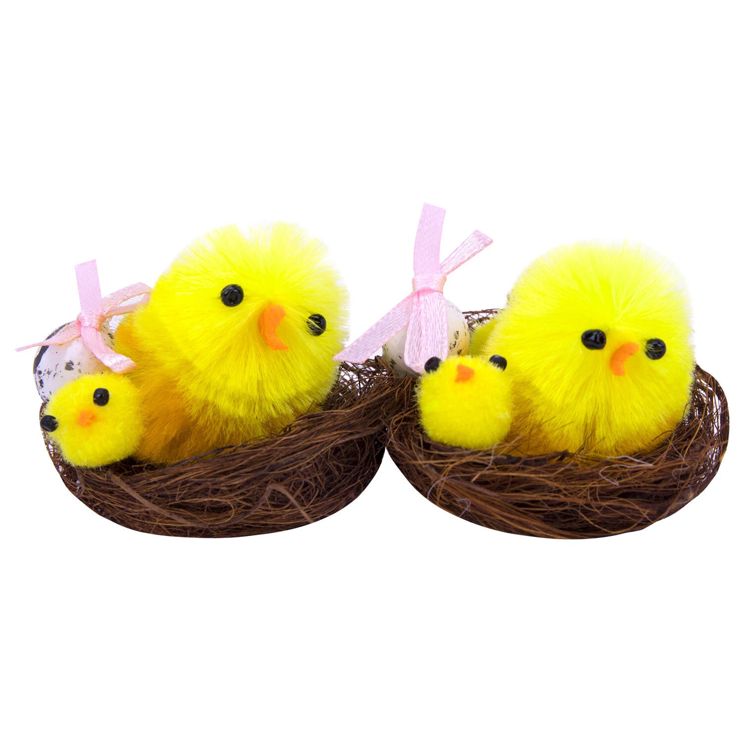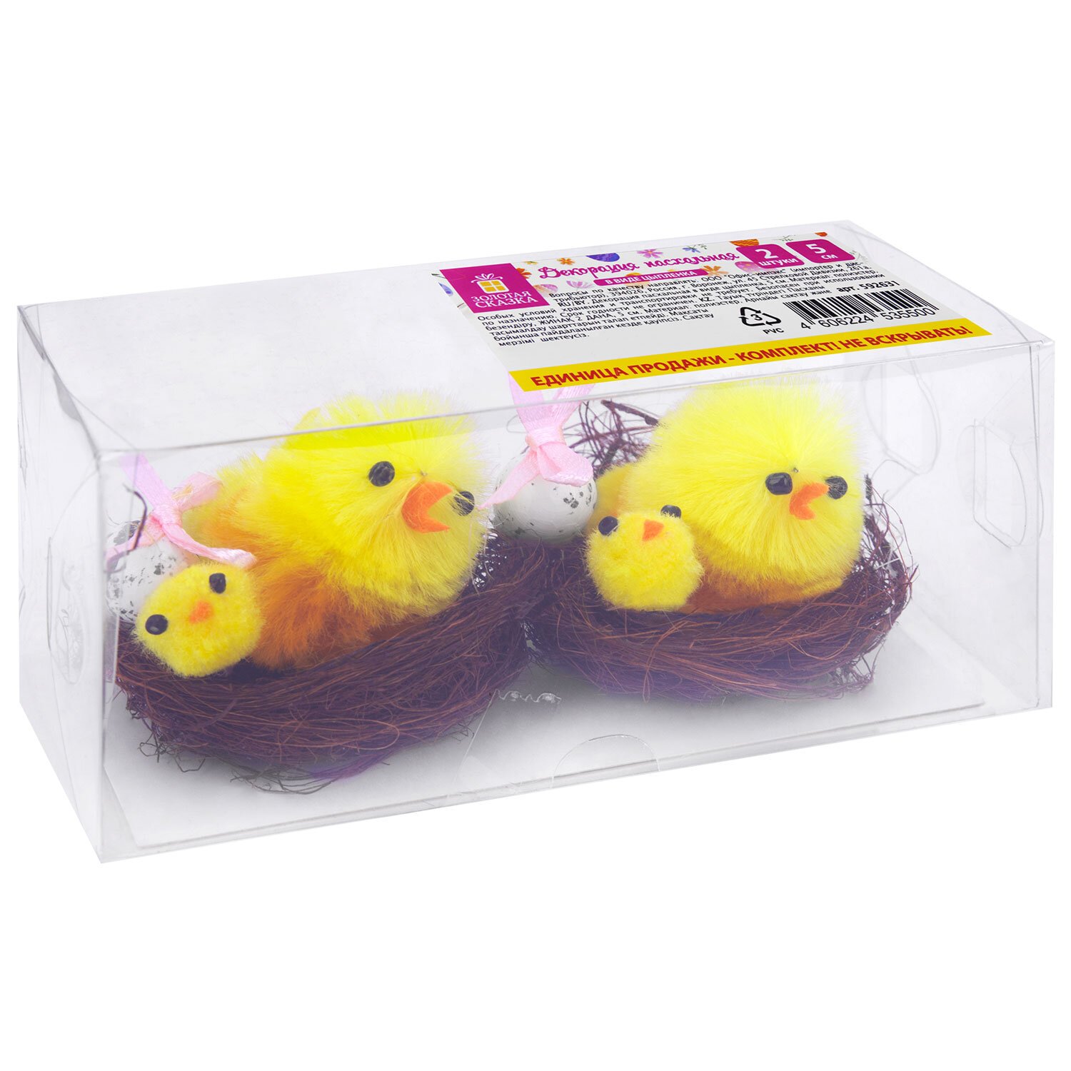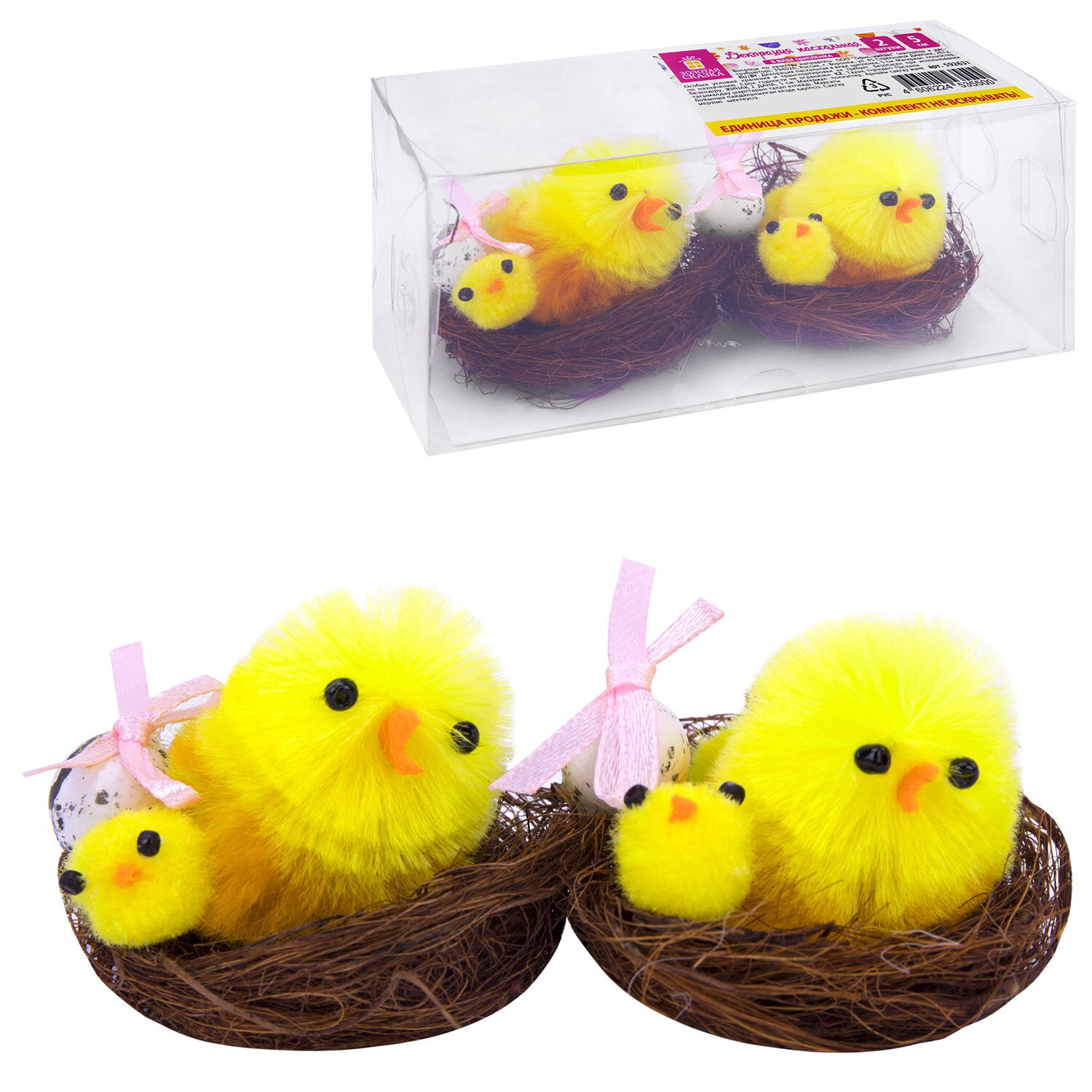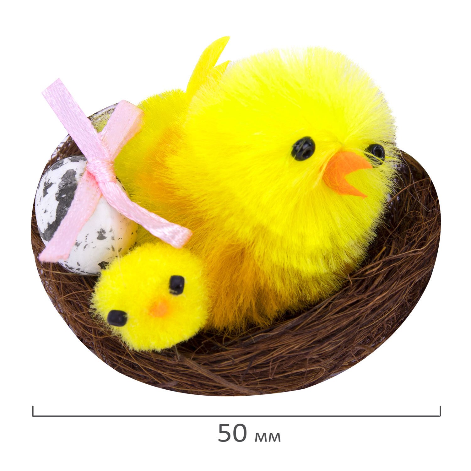 Декорация пасхальная 5см "Птенцы в гнезде", КОМПЛЕКТ 2 штуки, полиэстер, ЗОЛОТАЯ СКАЗКА, 592631