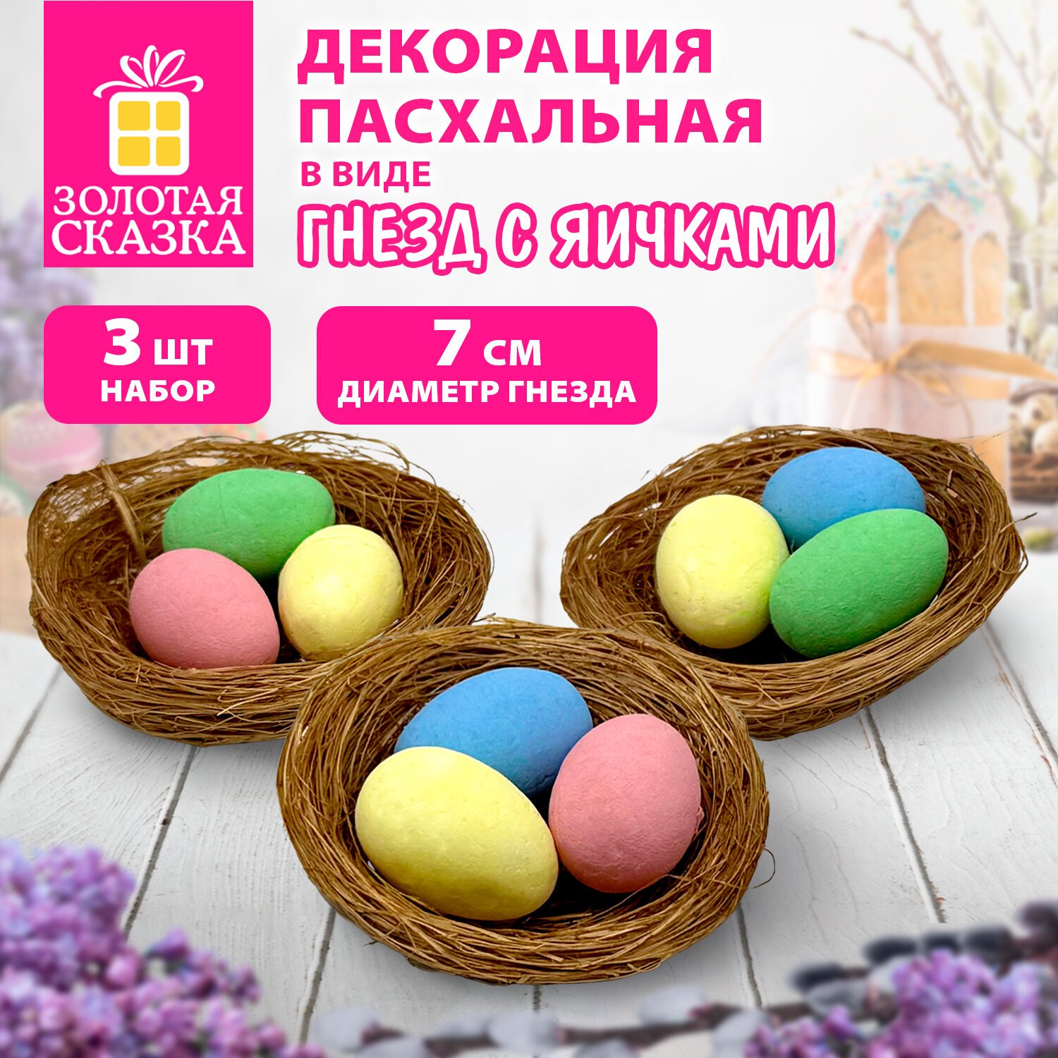 Декорация пасхальная 7 см "Гнездо", КОМПЛЕКТ 3 штуки, пластик, ЗОЛОТАЯ СКАЗКА, 592639