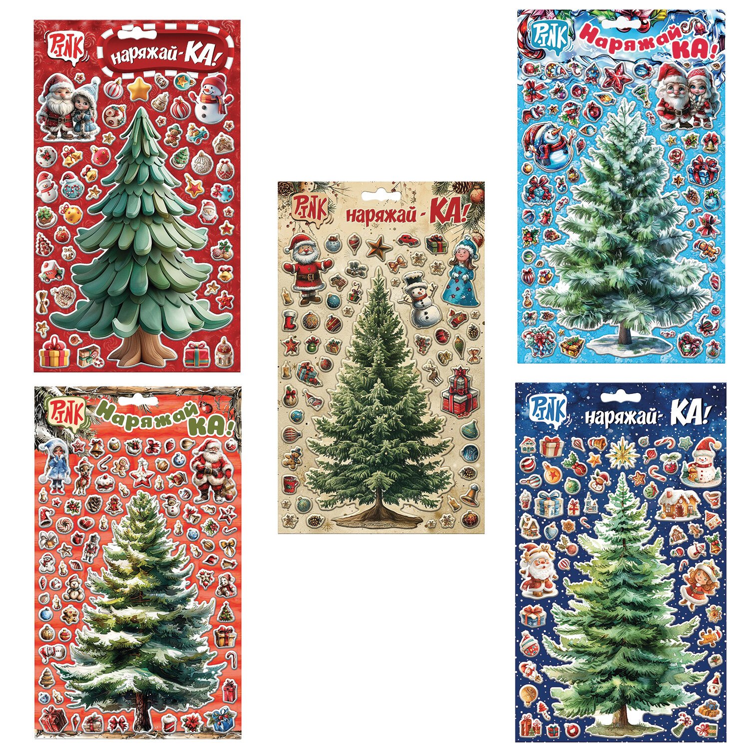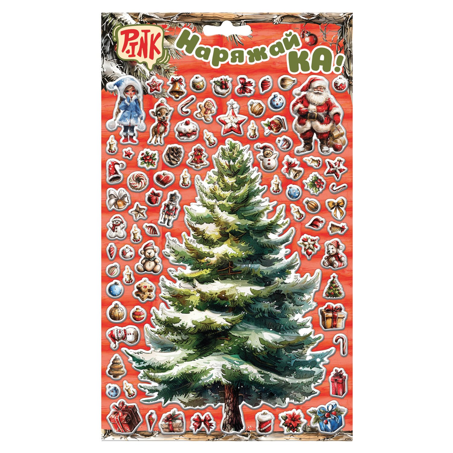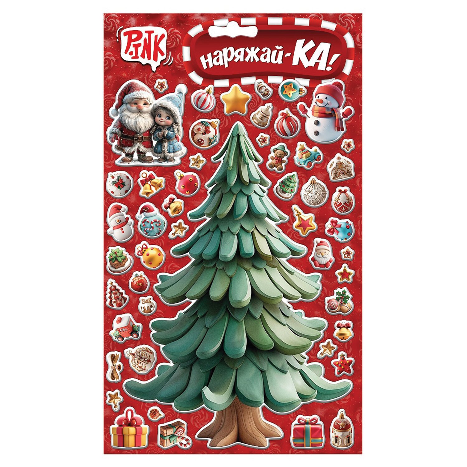 Декоративный набор наклеек "Ёлочка-Наряжай-Ка!" АССОРТИ, 17х29 см, PINK