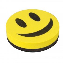 Стиратели магнитные для магнитно-маркерной доски ЮНЛАНДИЯ "Смайлик", 50 мм, КОМПЛЕКТ 4 ШТ., желтые, с рисунком, 237504