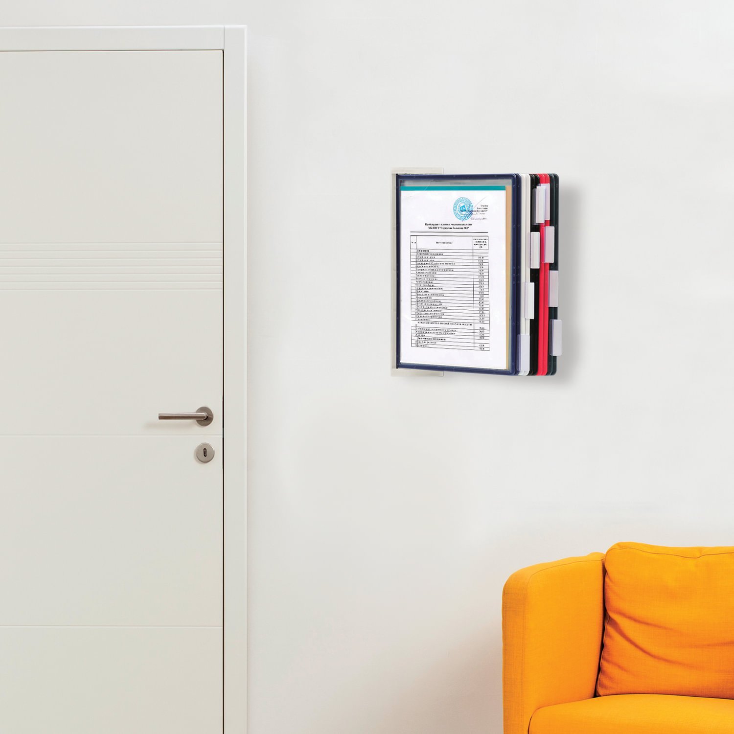 10 двухсторонних цветных панелей позволяют разместить одновременно до 20 листов формата А4. Прочные и гибкие литые рамки панелей изготовлены из полипропилена, пригодного для повторной переработки и дальнейшего использования. Демопанели оснащены съемными ярлычками-табуляторами для маркировки и удобного поиска нужной информации. Карман демопанели из прочного прозрачного материала с антибликовым покрытием надежно защитит документы от внешних воздействий. Винты для крепления демосистемы к стене поставляются в комплекте. Стильный серый цвет пластикового корпуса подойдёт для большинства современных интерьеров.