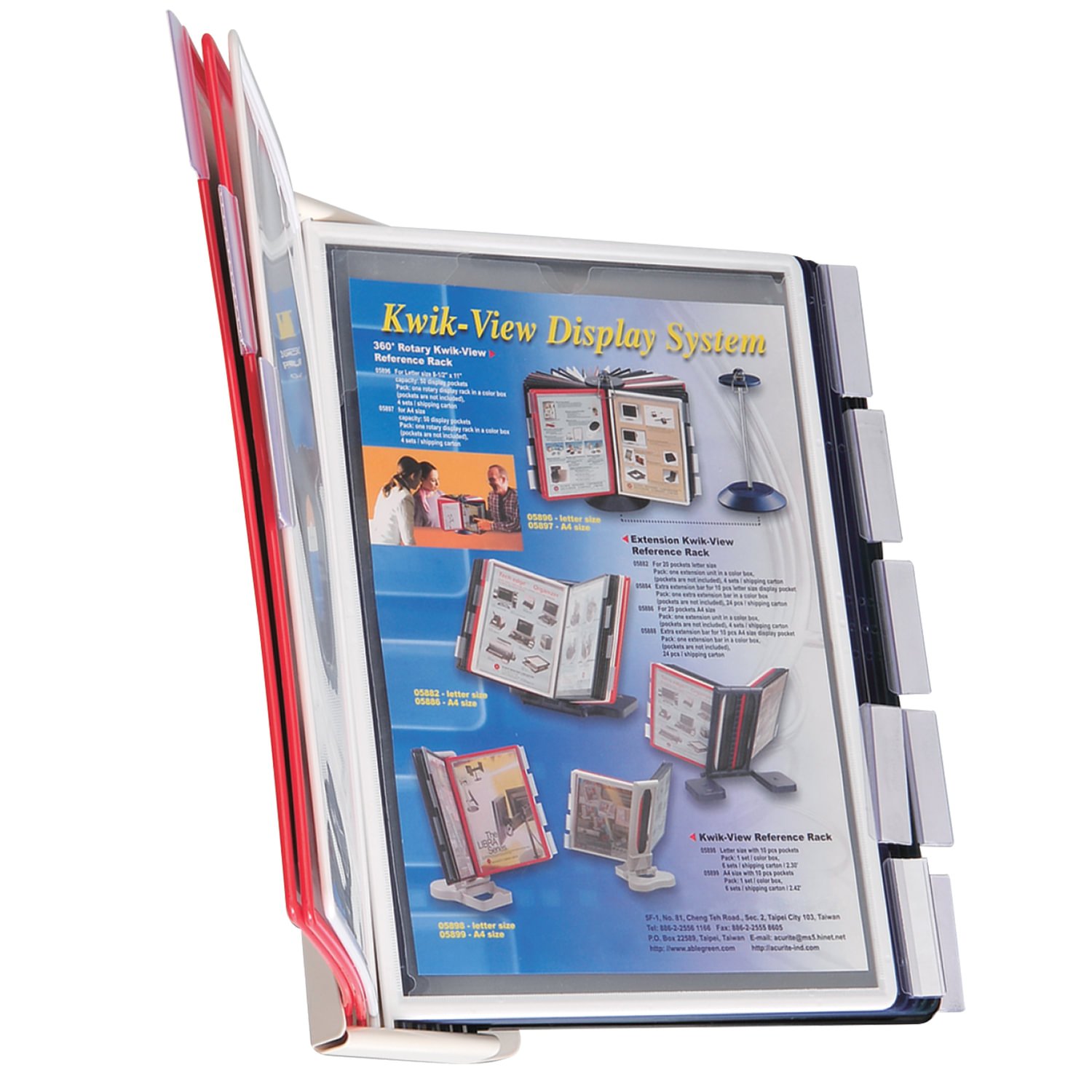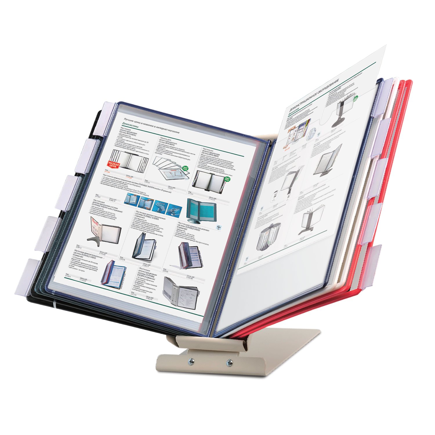 10 двухсторонних цветных панелей позволяют разместить одновременно до 20 листов формата А4. Прочные и гибкие литые рамки панелей изготовлены из полипропилена, пригодного для повторной переработки и дальнейшего использования. Демопанели оснащены съемными ярлычками-табуляторами для маркировки и удобного поиска нужной информации. Карман демопанели из прочного прозрачного материала с антибликовым покрытием надежно защитит документы от внешних воздействий. Устойчивое металлическое основание с антискользящей поверхностью и крепление панелей в вертикальном и горизонтальном положениях гарантируют удобство пользователю и быстрый доступ к документу. Возможно как настольное, так и настенное размещение. Стильный серый цвет металлического корпуса подойдёт для большинства современных интерьеров.