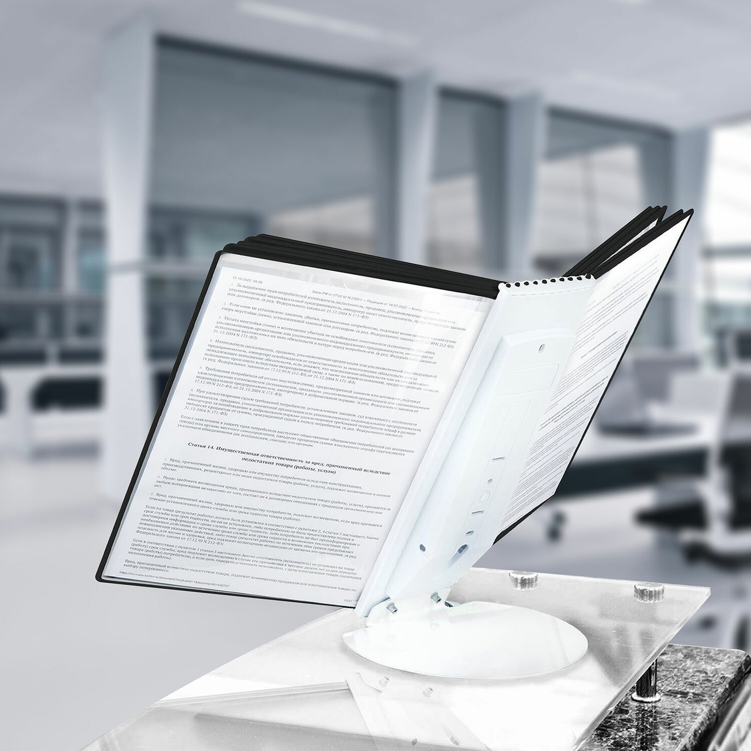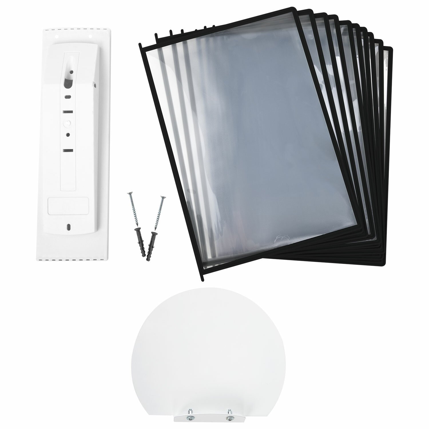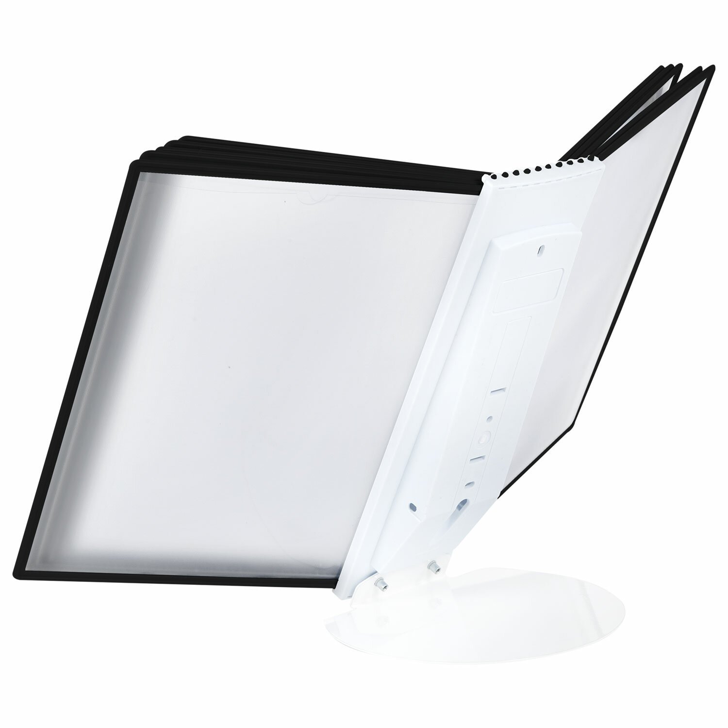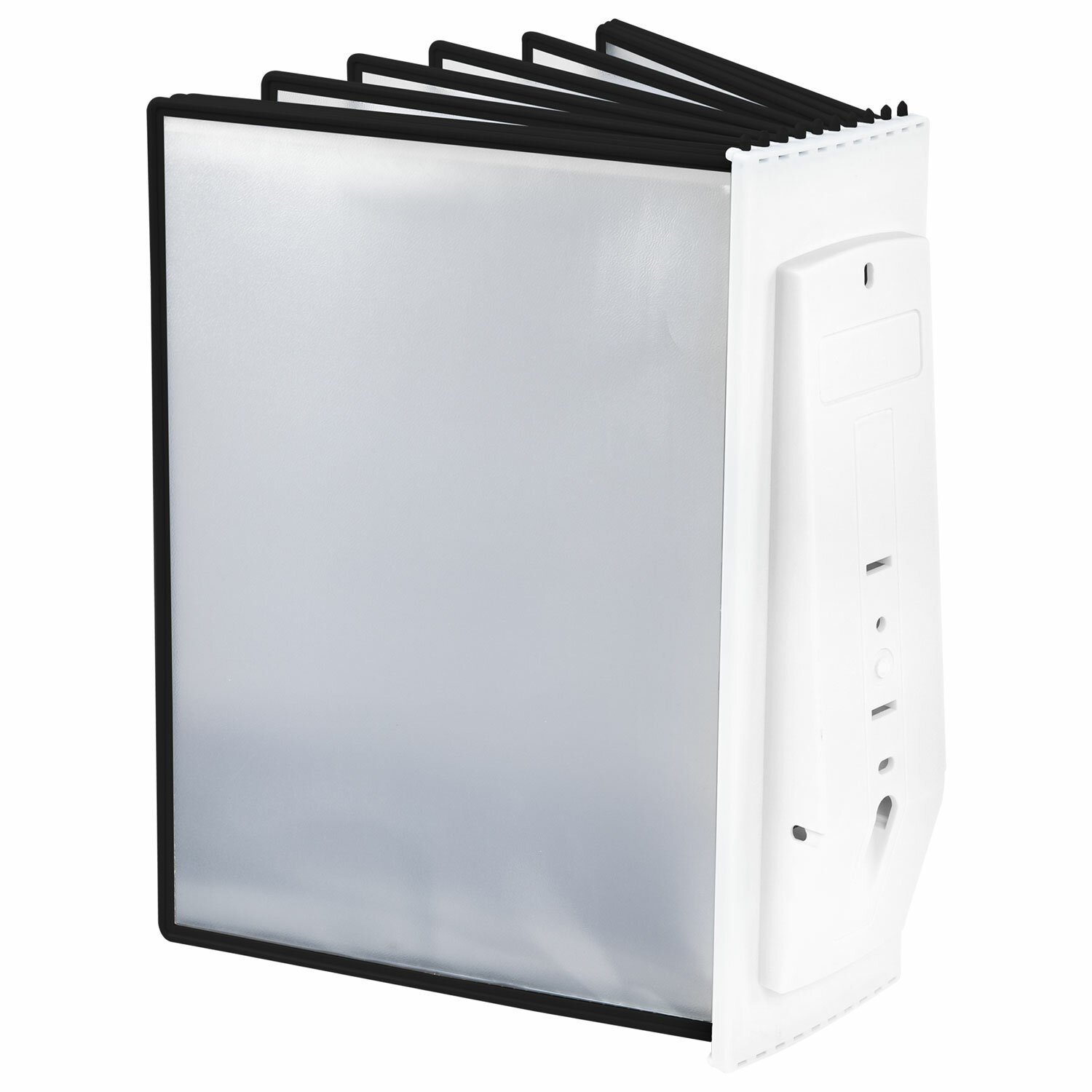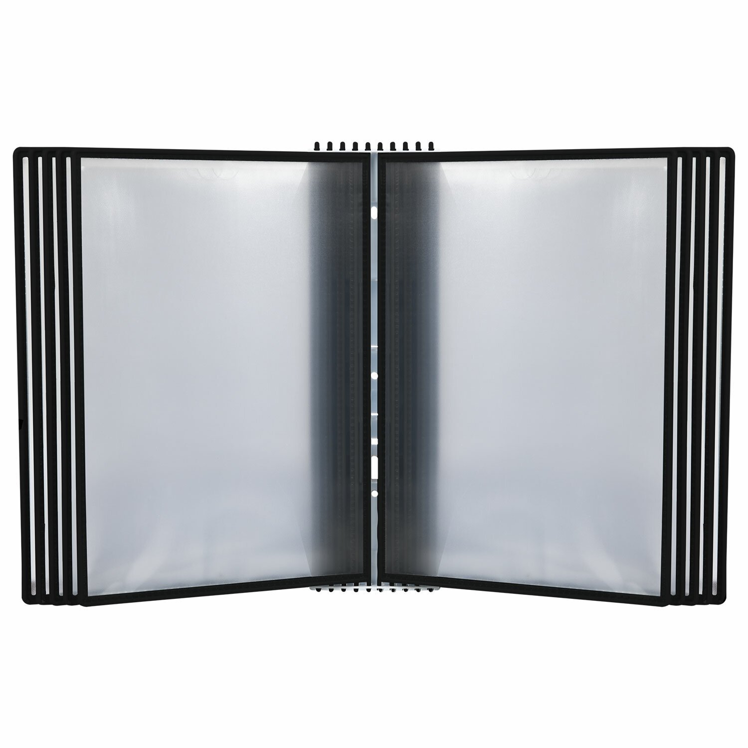 10 двусторонних панелей серого цвета позволяют разместить одновременно до 20 листов формата А4. Прозрачные вкладыши из ПВХ-материала с антибликовым покрытием надежно защитят документы от внешних воздействий и повреждений. Возможно как настольное, так и настенное размещение. Элементы крепления к стене входят в комплект.