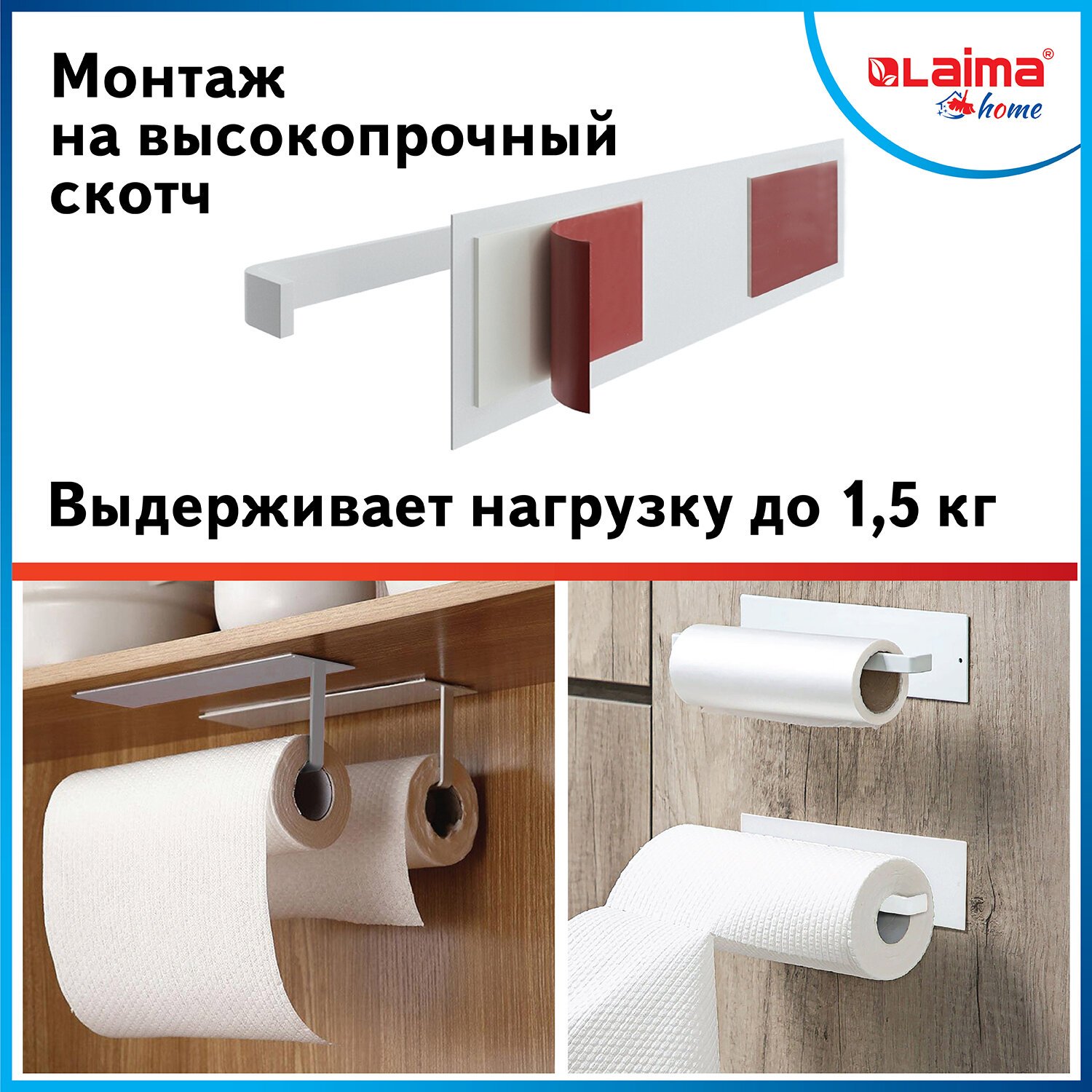 Держатель для бумажных полотенец и рулонных салфеток самоклеящийся, LAIMA HOME, 608004