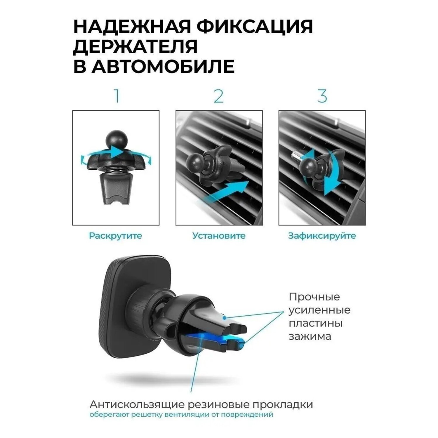 Не повреждает решетку вентиляции даже при многократной установке/снятии держателя.