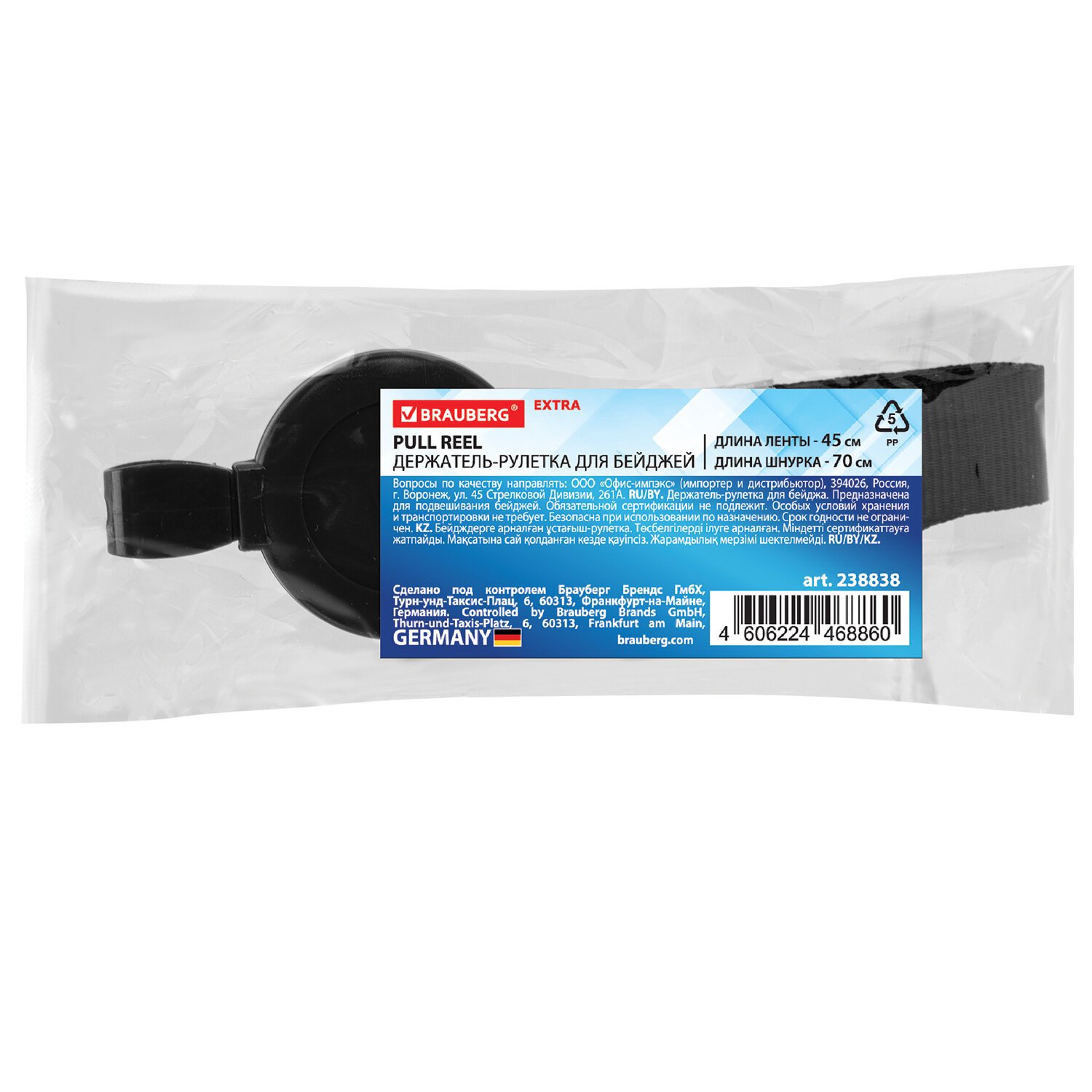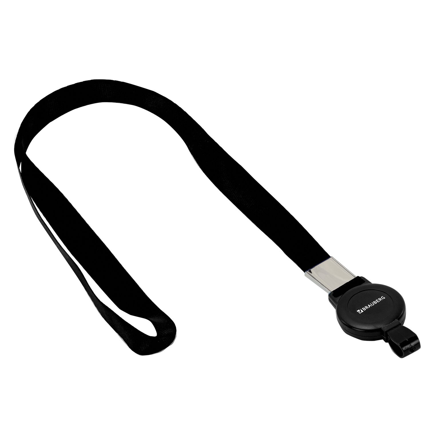 Держатель-рулетка для бейджей 70 см, с лентой 45 см, черный, BRAUBERG EXTRA, 238838