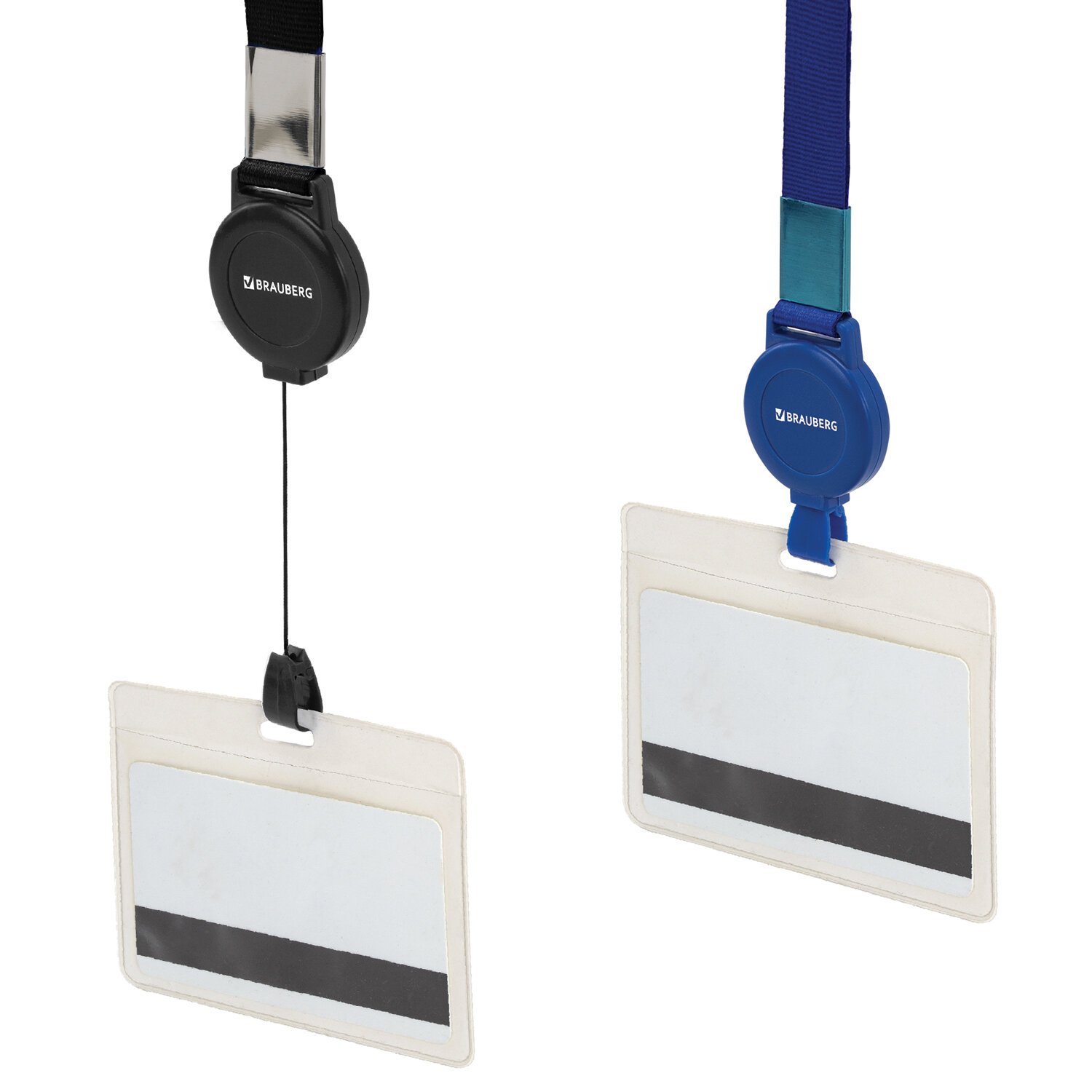 Держатель-рулетка для бейджей, 70 см, 2 карабина, синий, в блистере, BRAUBERG, 238239
