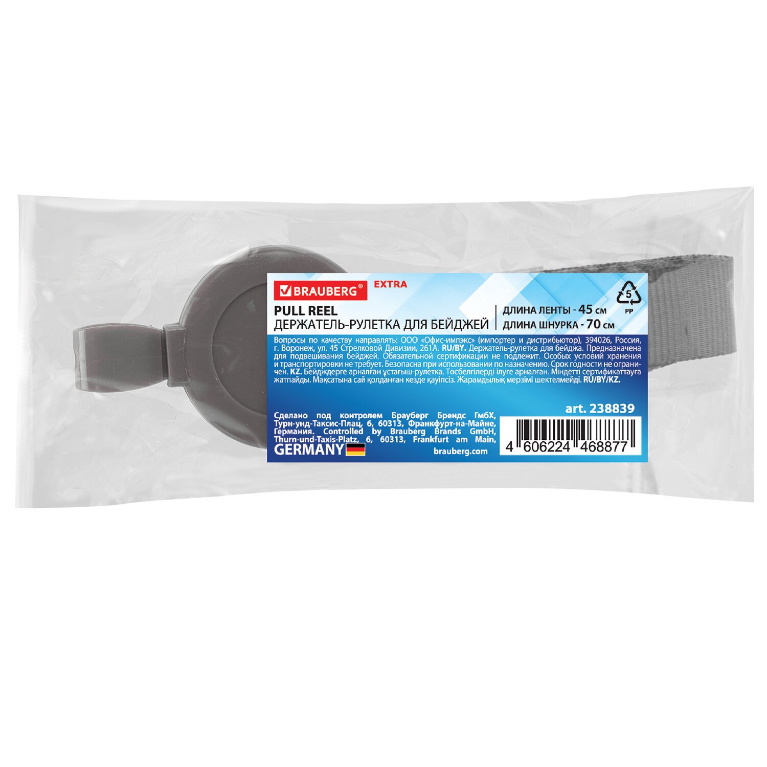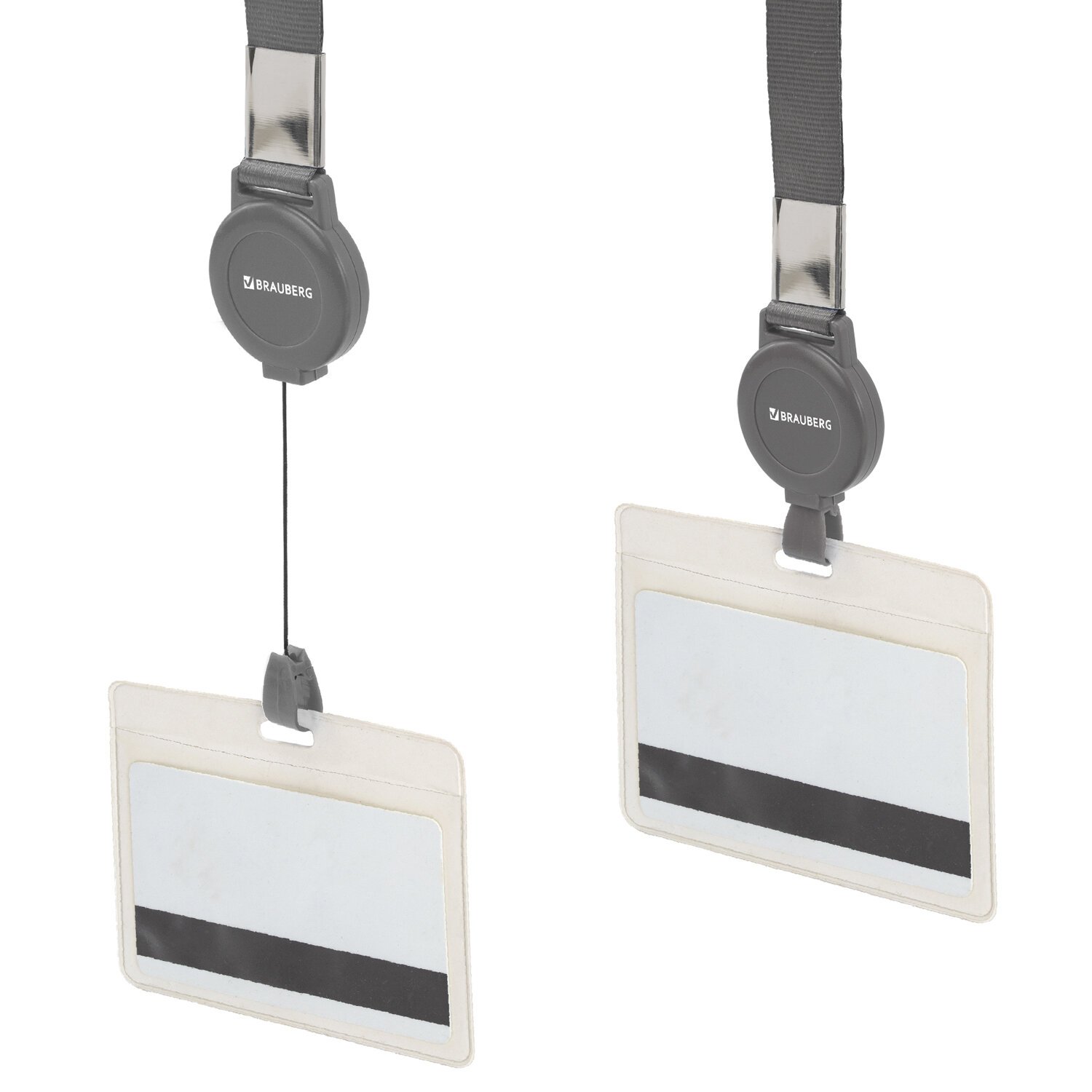 Держатель-рулетка для бейджей 70 см, с лентой 45 см, серый, BRAUBERG EXTRA, 238839