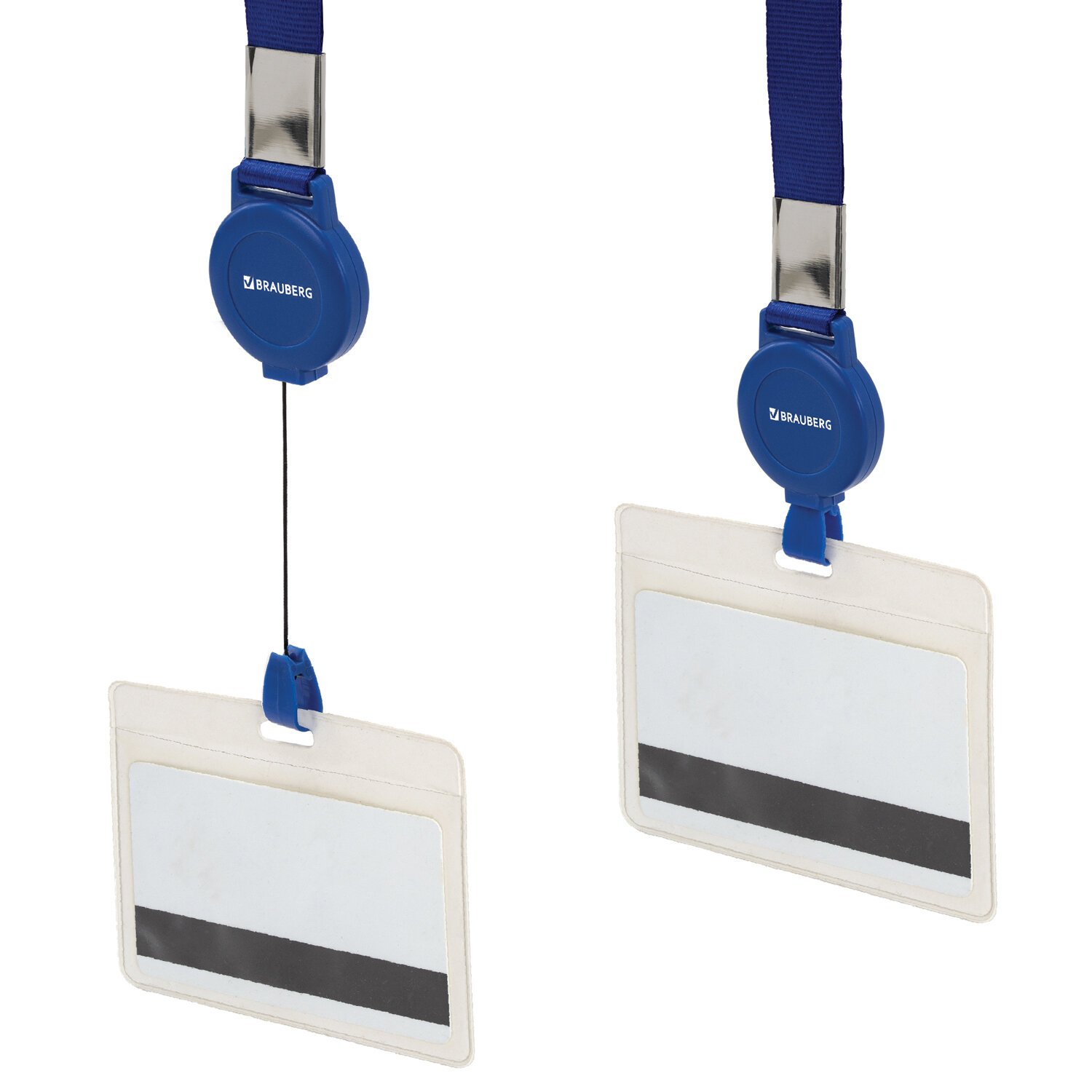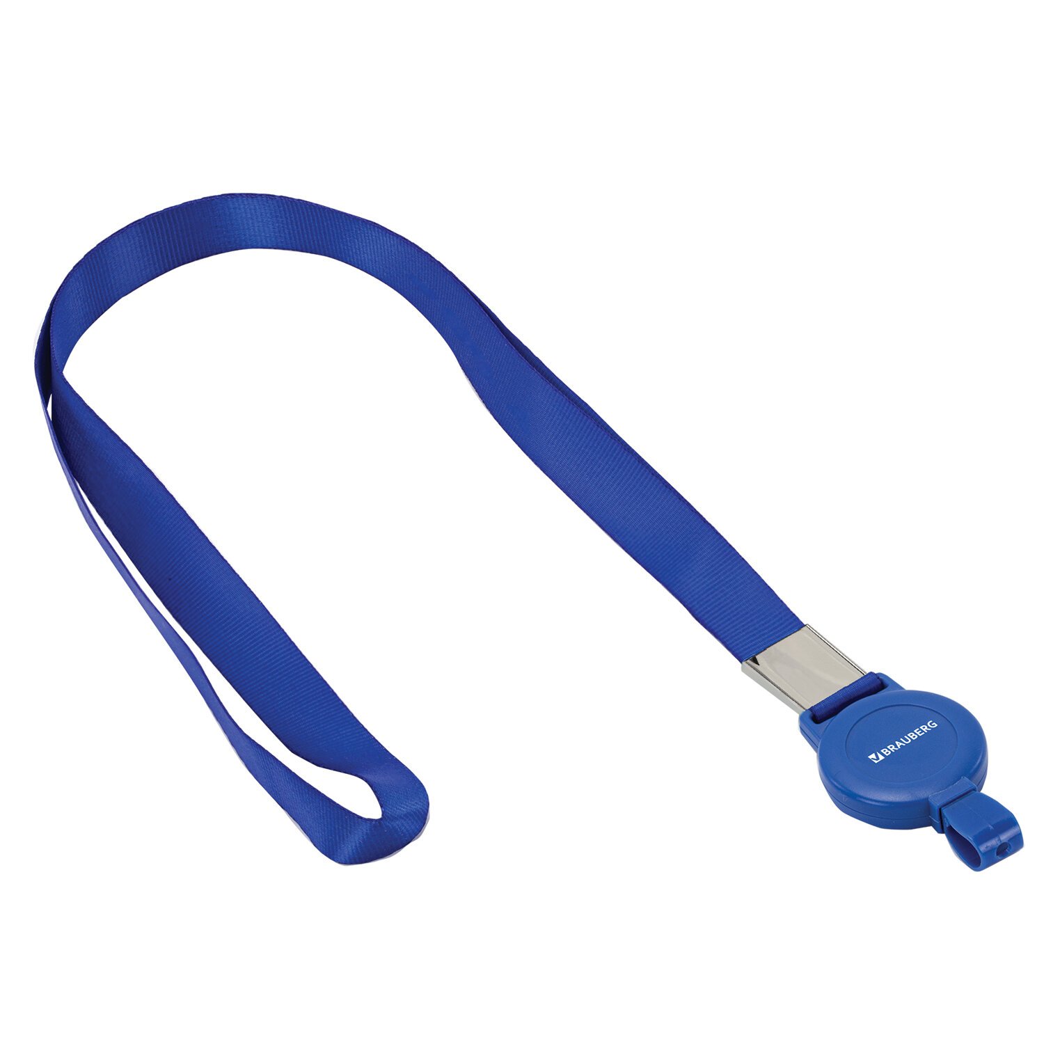 Держатель-рулетка для бейджей 70 см, с лентой 45 см, синий, BRAUBERG EXTRA, 238837