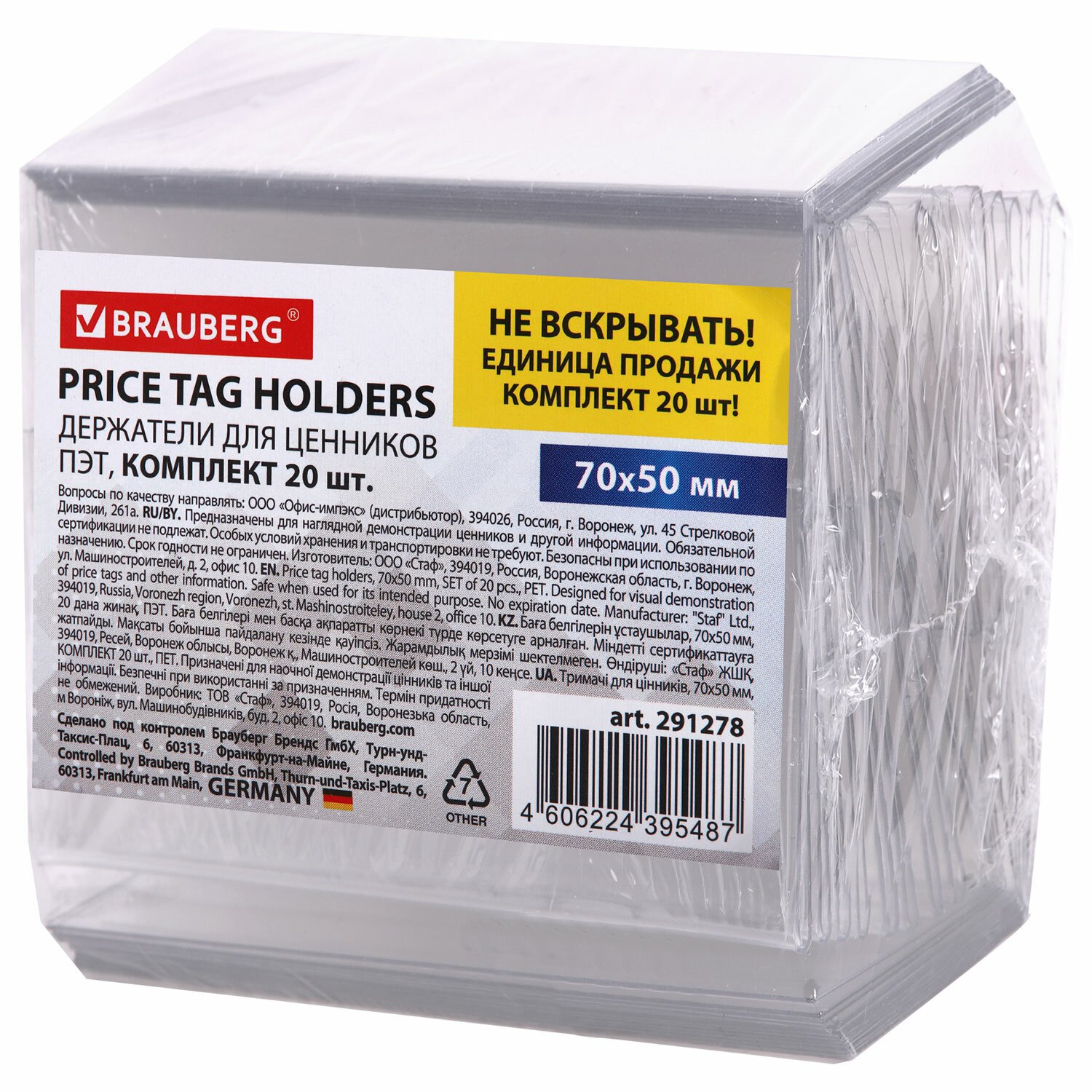 Держатели для ценников, 70х50 мм, КОМПЛЕКТ 20 шт., ПЭТ, 0,5 мм, BRAUBERG, 291278
