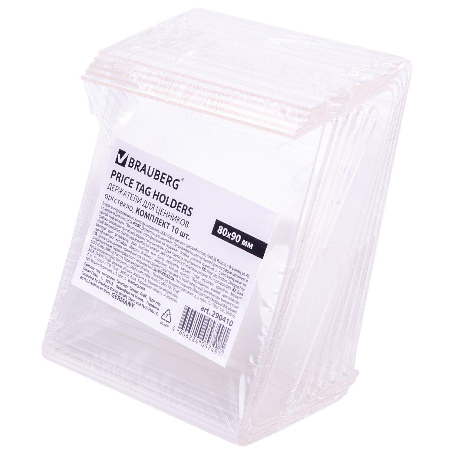 Держатели для ценников, 80х90 мм, КОМПЛЕКТ 10 шт., оргстекло, BRAUBERG, 290410