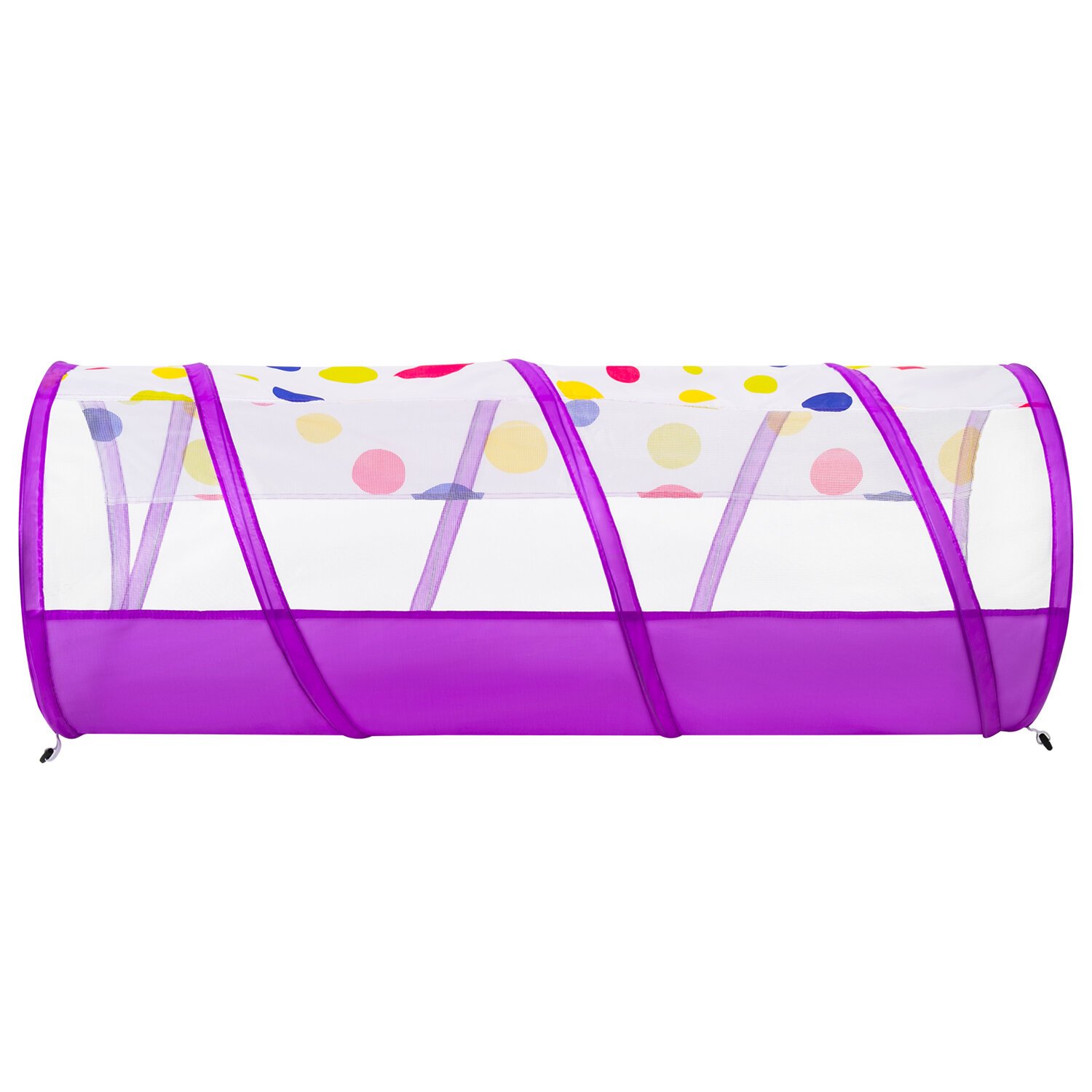 Элементы можно использовать как вместе, так и отдельно друг от друга – они фиксируются между собой специальными крепежами-пуговицами. Яркий и красочный дизайн, подходящий как девочкам, так и мальчикам, не останется без внимания. Каждый элемент набора оснащен москитной сеткой, благодаря чему внутри всегда будет свежий воздух и защита от солнца. На текстильном прочном дне внутри палатки удобно сидеть.