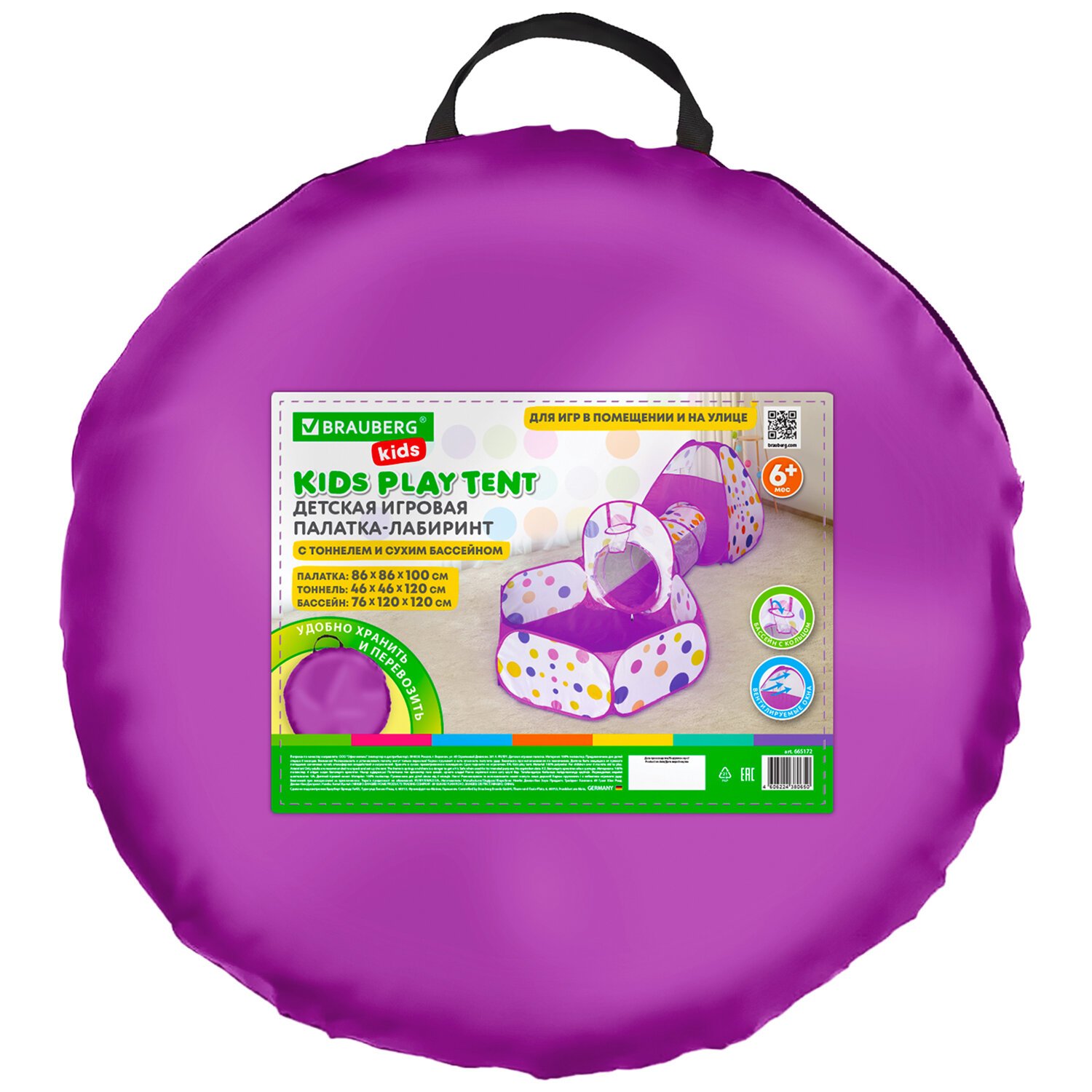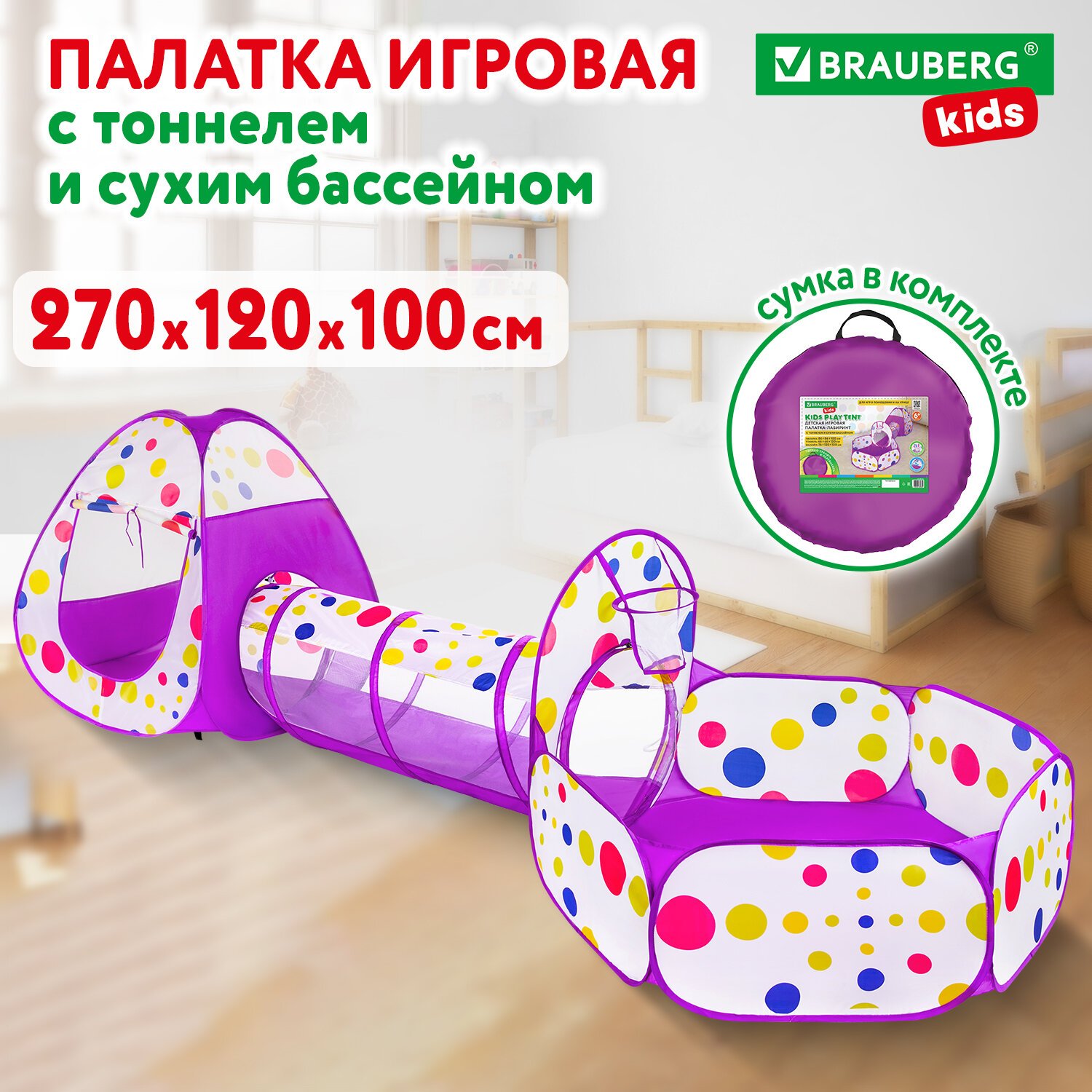 Детская игровая палатка-лабиринт BRAUBERG KIDS предоставляют детям идеальное индивидуальное пространство для игр, движения, веселья с друзьями, чтения или сна. Она подходит для использования в помещении или на улице.