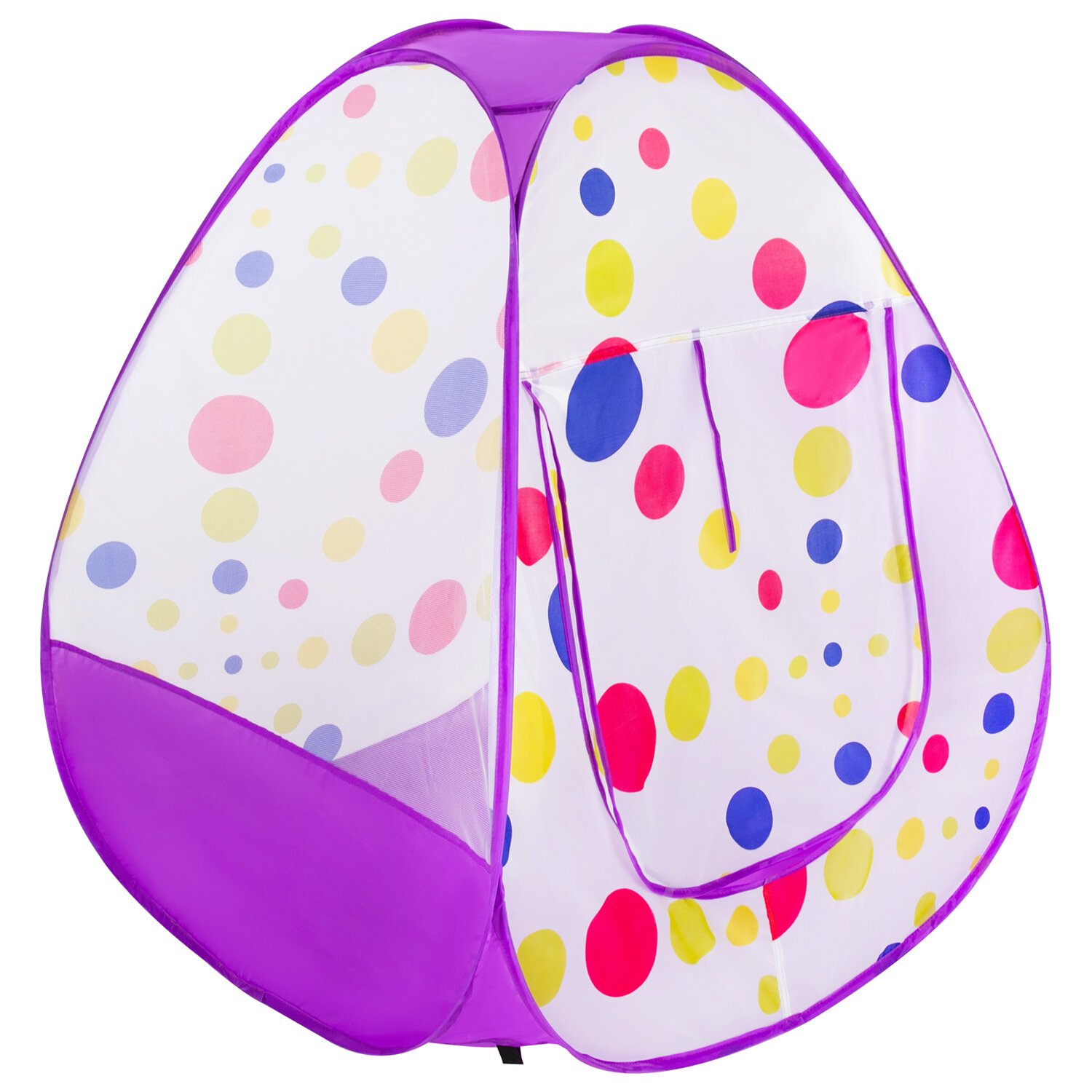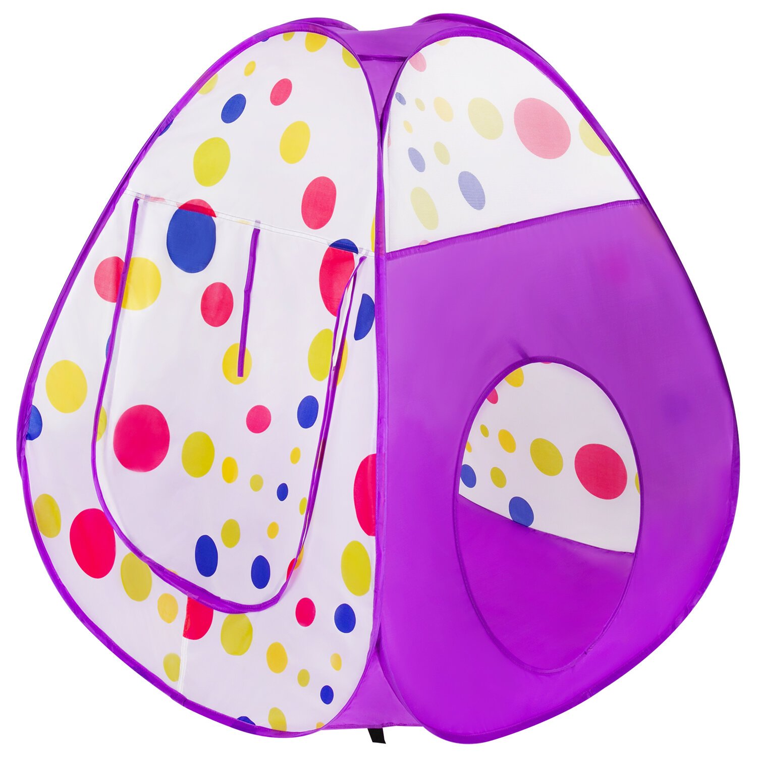 Дверь палатки поднимается, сворачиваясь в рулон наверху, и фиксируется завязкой. Палатка изготовлена из текстильных синтетических материалов с пластиковыми элементами и легко моется губкой в случае загрязнения. Быстросборный пластиковый механизм домика с текстильным прочным дном особенно удобен для путешествий на природу, в парк, на дачу или в гости, чтобы весело провесит время одному или с друзьями.