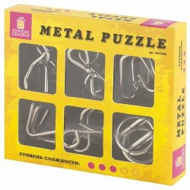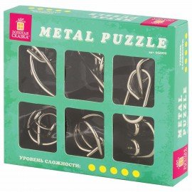 Головоломки металлические ЗОЛОТАЯ СКАЗКА (уровень сложности "ЛЮБИТЕЛЬ"), набор 6 штук, 662088