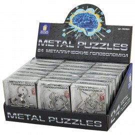 Головоломка металлическая большая ЗОЛОТАЯ СКАЗКА, 24 вида, в дисплее, разные уровни сложности, 664924