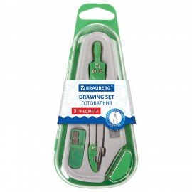 Готовальня BRAUBERG "Klasse", 3 предмета: циркуль 115 мм с колпачком, грифель, точилка, пенал с подвесом, 210330