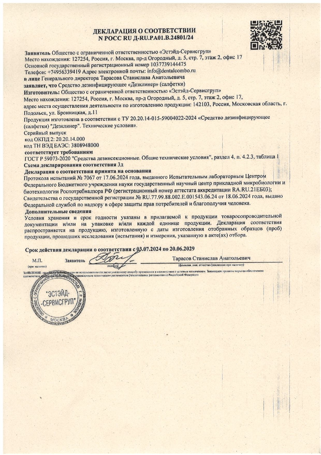 Салфетки «Дезклинер» активно разрушают на поверхностях биологические пленки; обладают хорошими моющими свойствами. Салфетки обладают высокой прочностью; при использовании не рвутся, не сбиваются в комок и не оставляют остаточной пленки на обработанной поверхности; совместимы с материалами медицинского оборудования (кроме подверженных воздействию спиртов).