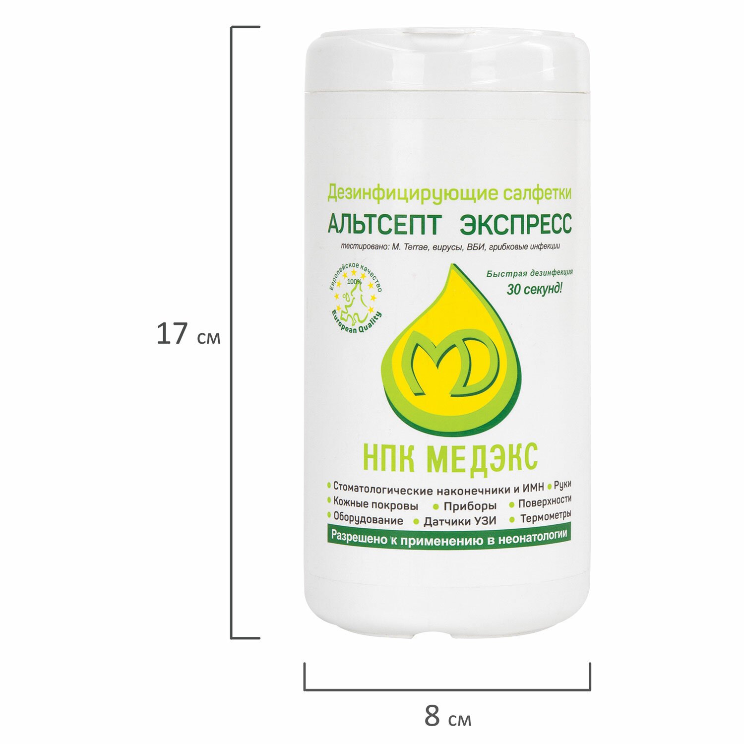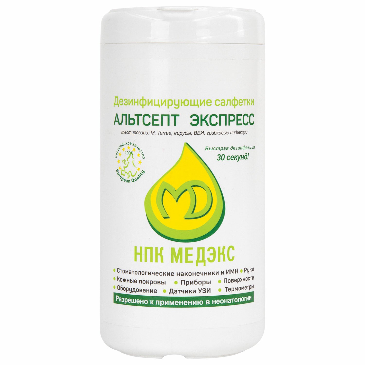Дезинфицирующие салфетки влажные 80 шт., АЛЬТСЕПТ ЭКСПРЕСС, для обработки рук и поверхностей