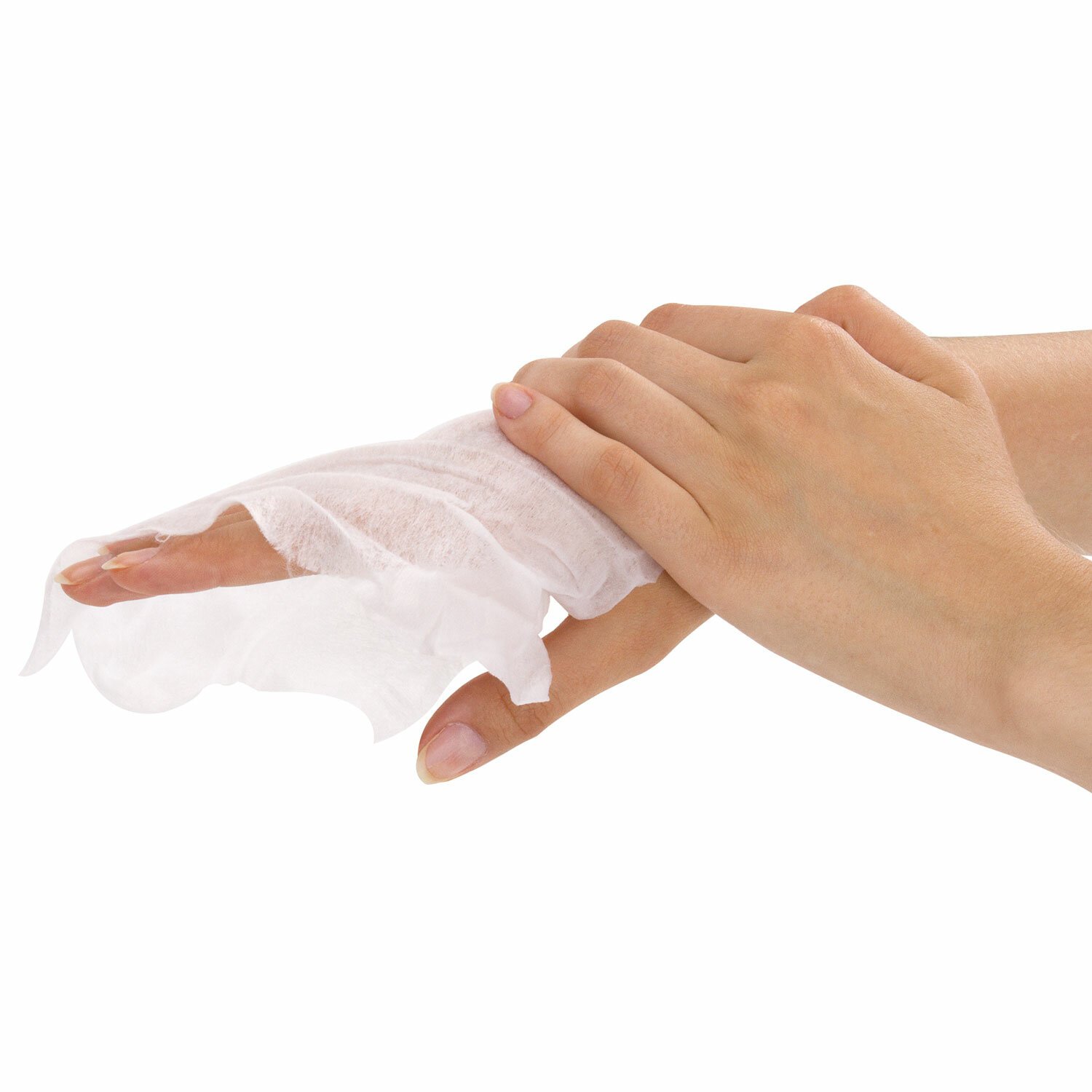 Салфетки из нетканого материала равномерно пропитаны дезинфицирующим раствором. pH средства – 7.