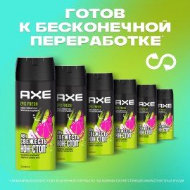 AXE "Epic fresh" – дезодорант спрей с революционной формулой, который надежно защищает от запаха пота на 48 часов* и дарит приятнейший аромат**.