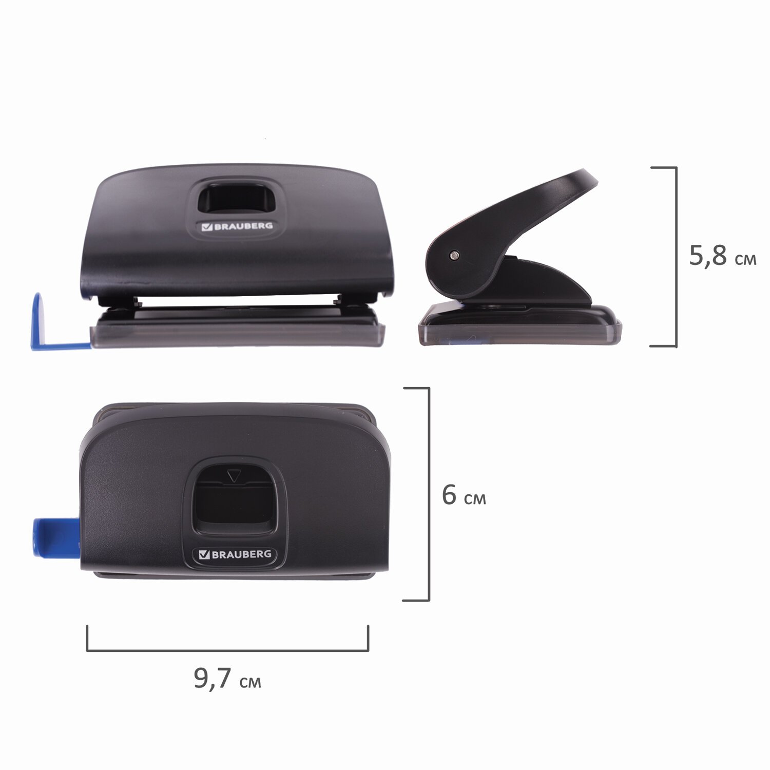 Дырокол BRAUBERG "Original", до 10 листов, синий, 227785