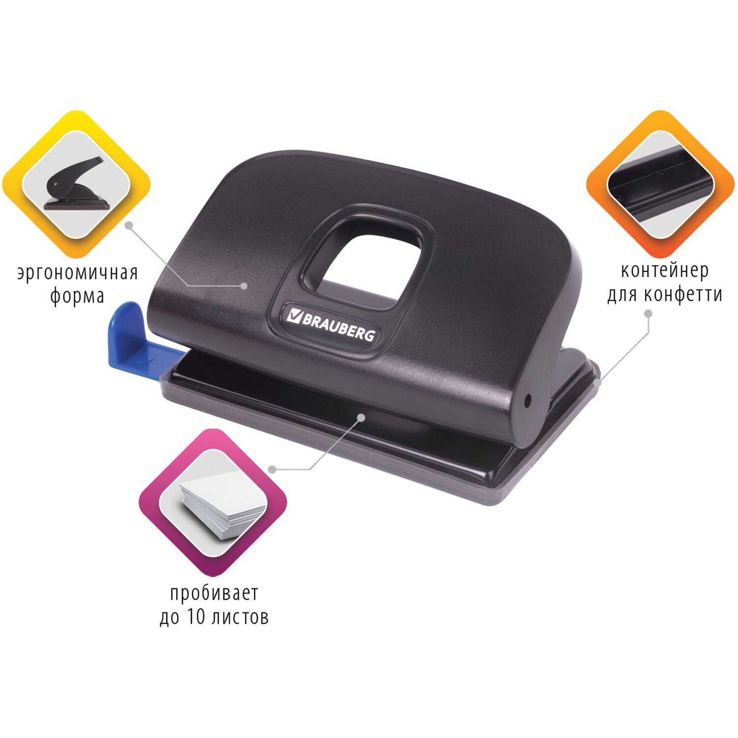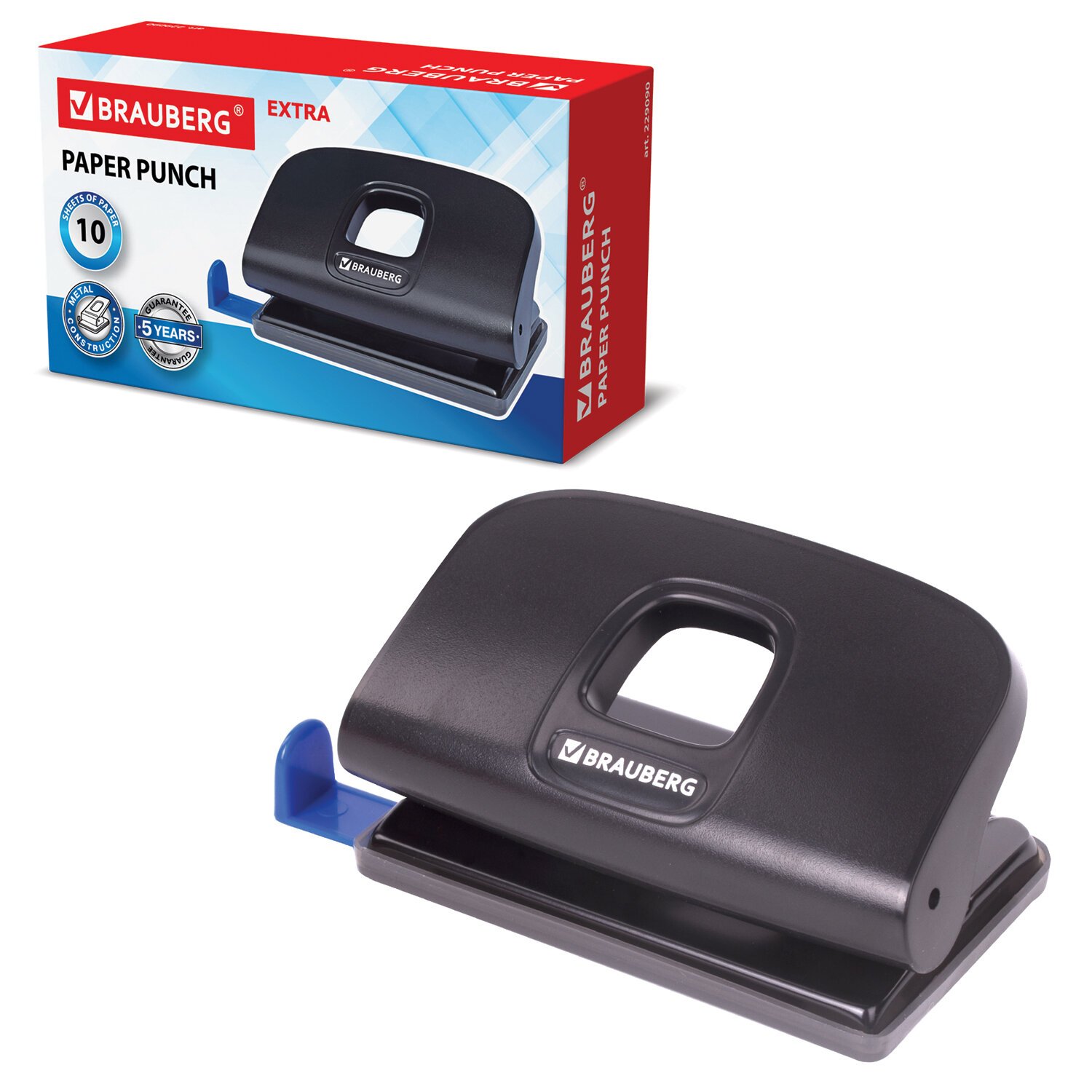 Дырокол BRAUBERG "Extra", до 10 листов, черный, 229090