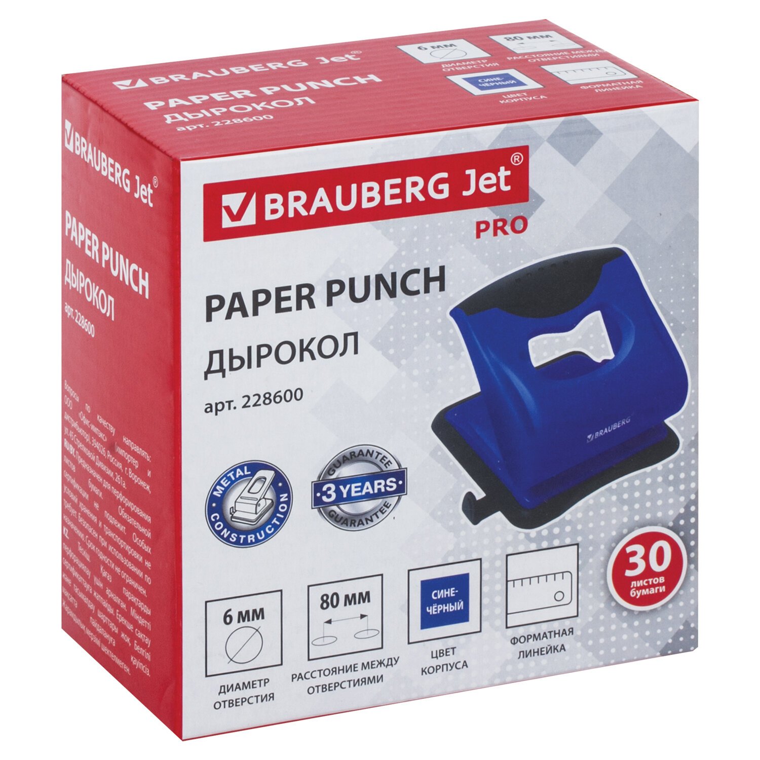 Дырокол BRAUBERG "JET PRO", до 30 листов, сине-черный, 228600