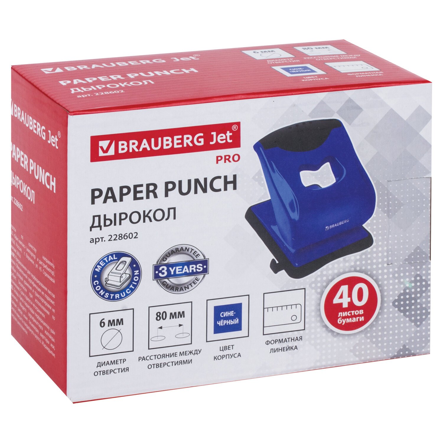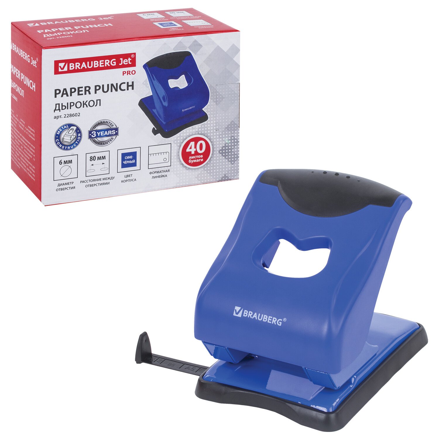 Дырокол BRAUBERG "JET PRO", до 40 листов, сине-черный, 228602