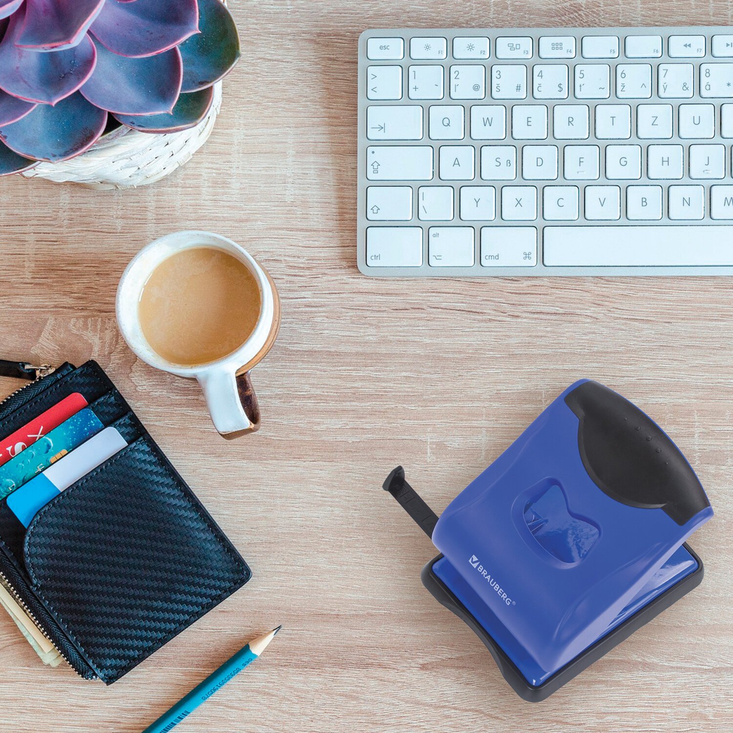 Дырокол металлический BRAUBERG "Style", до 40 листов, ассорти (синий/черный), 220947