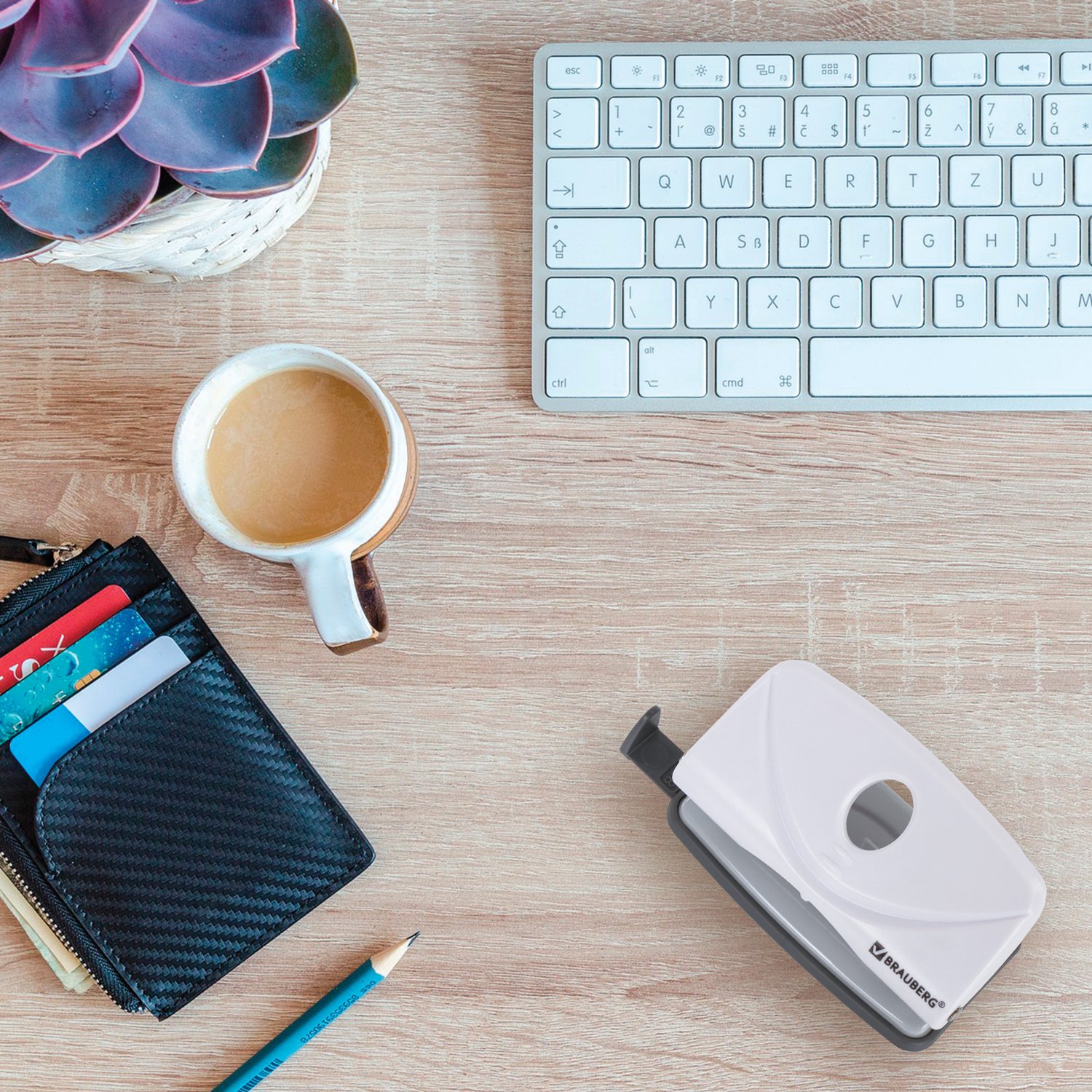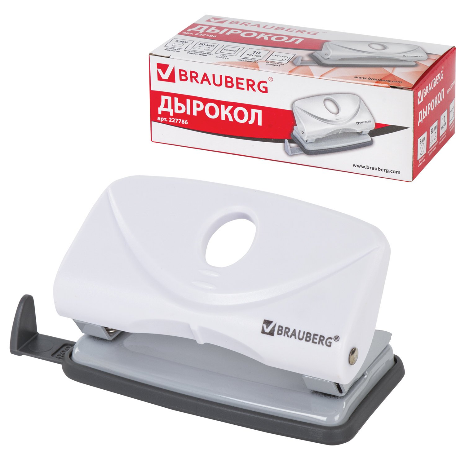 Дырокол BRAUBERG "Original", до 10 листов, белый, 227786