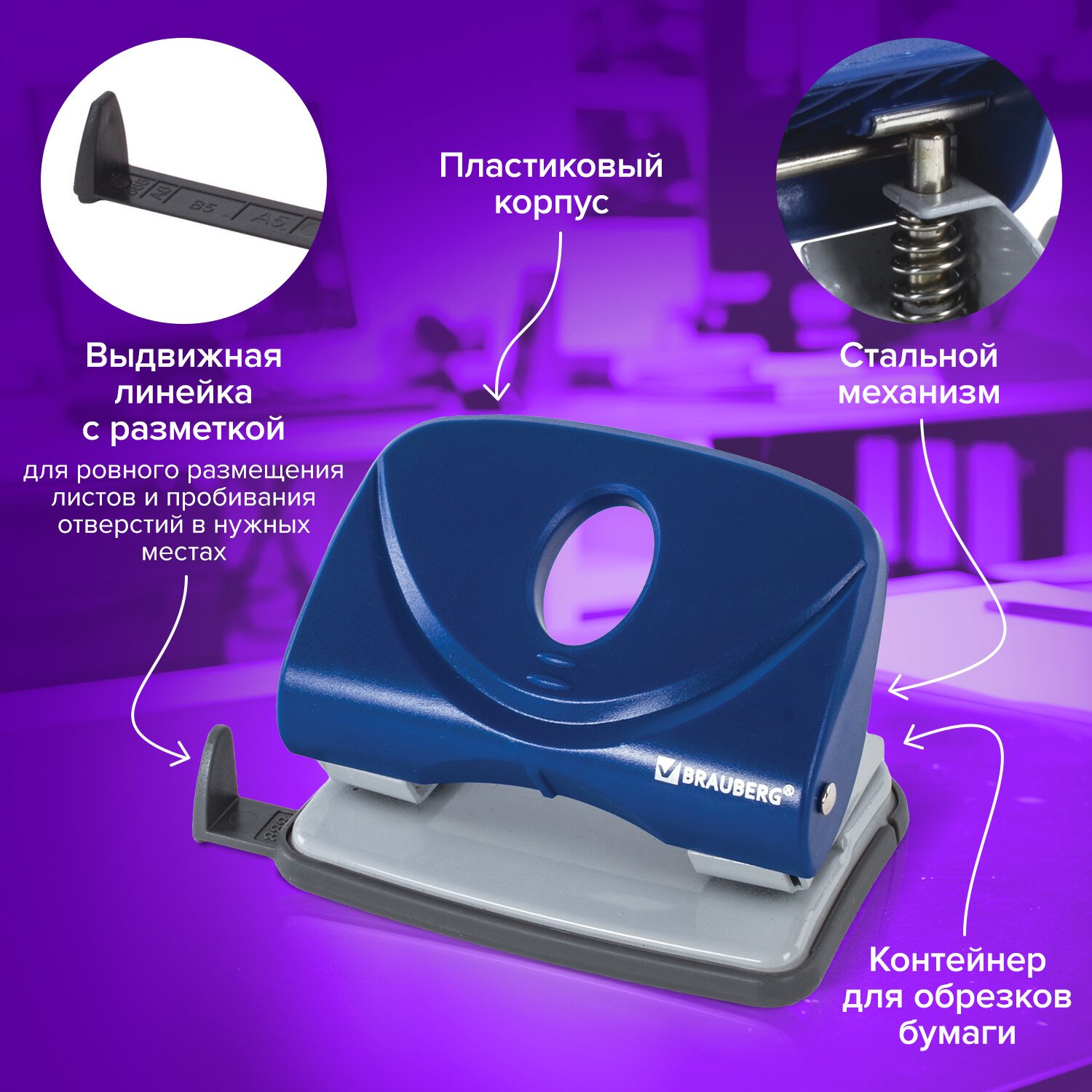 Дырокол BRAUBERG "Original", до 20 листов, синий, 222540