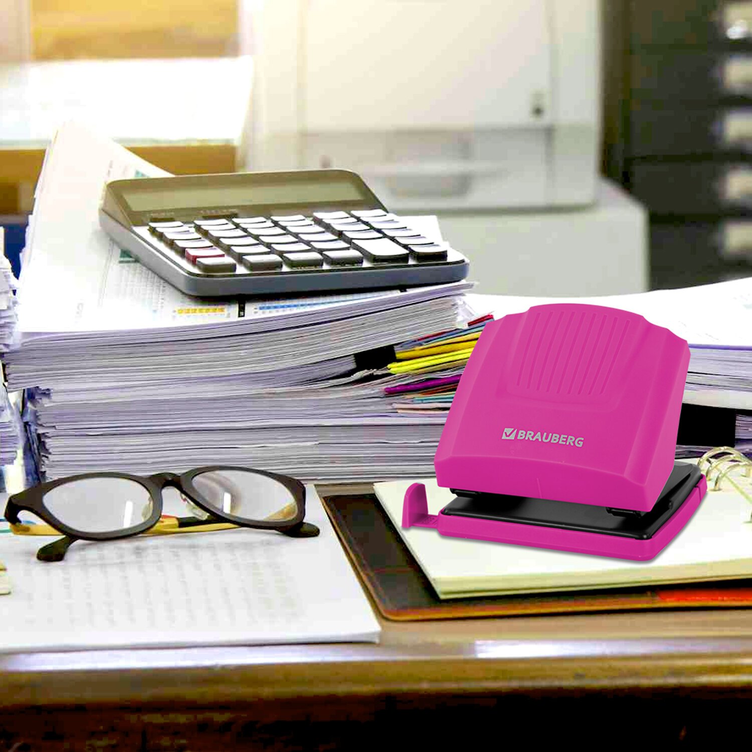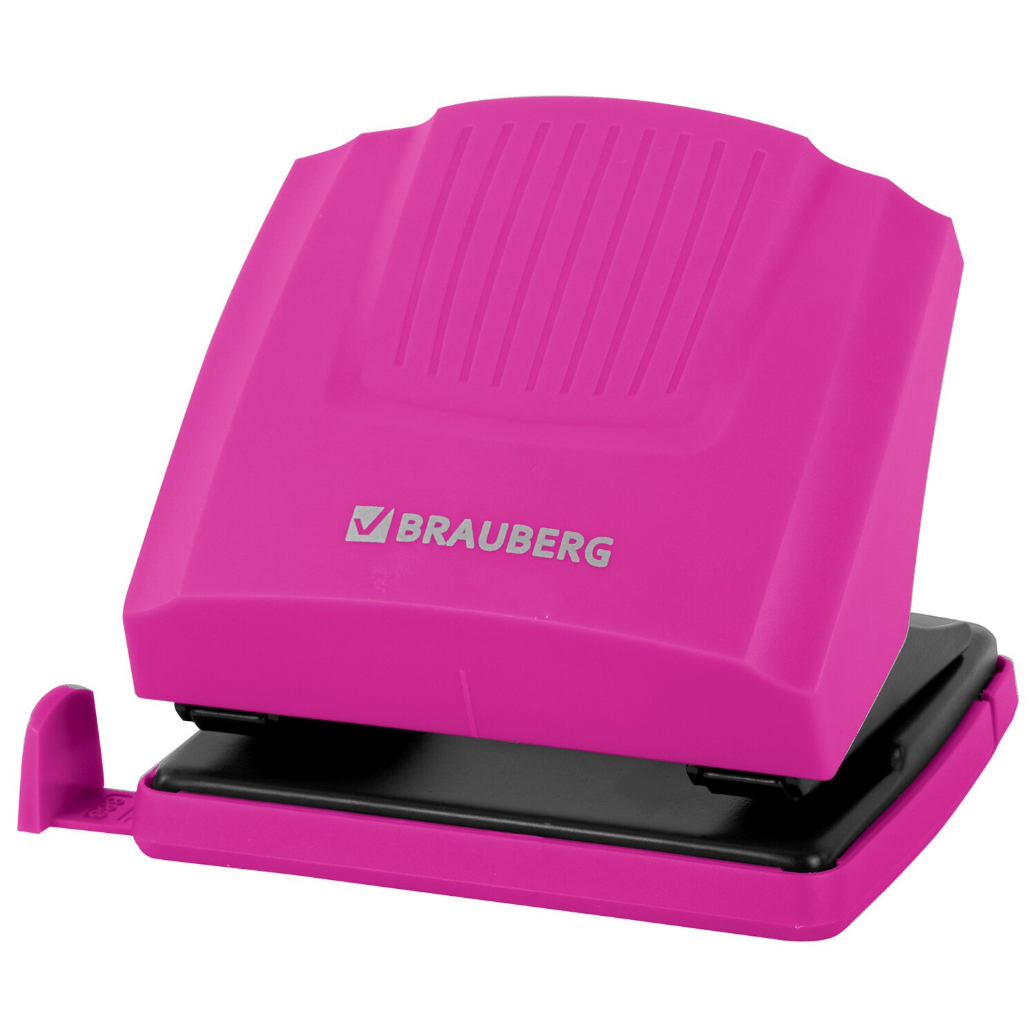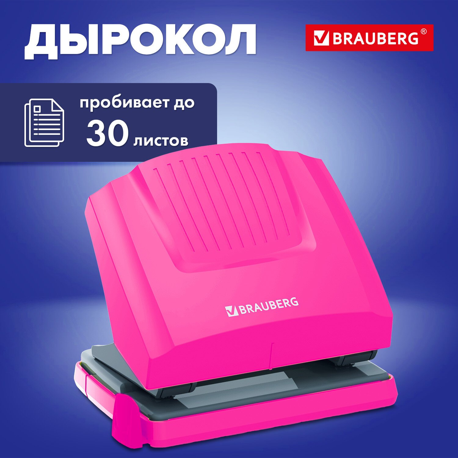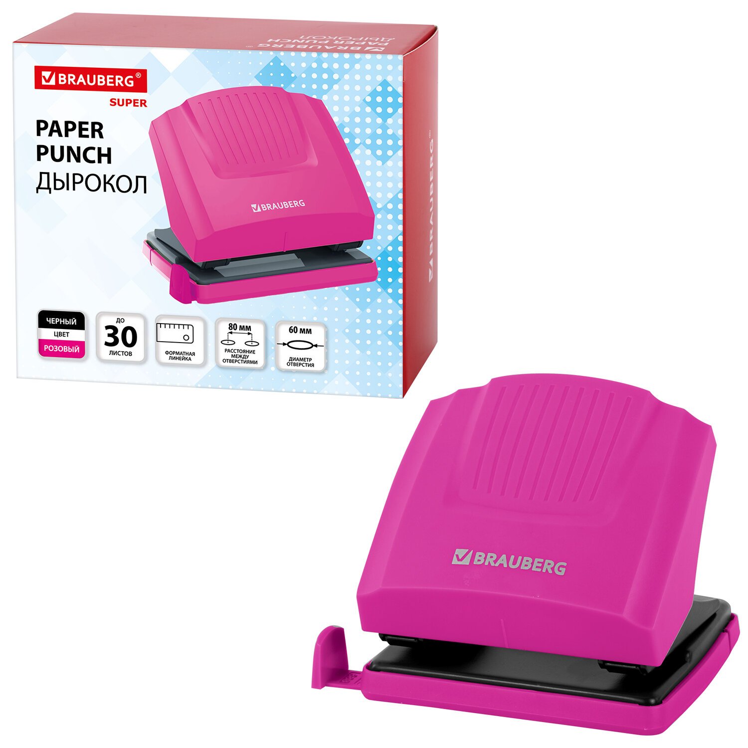 Дырокол BRAUBERG "SUPER", до 30 листов, цвет маджента и черный, 272745