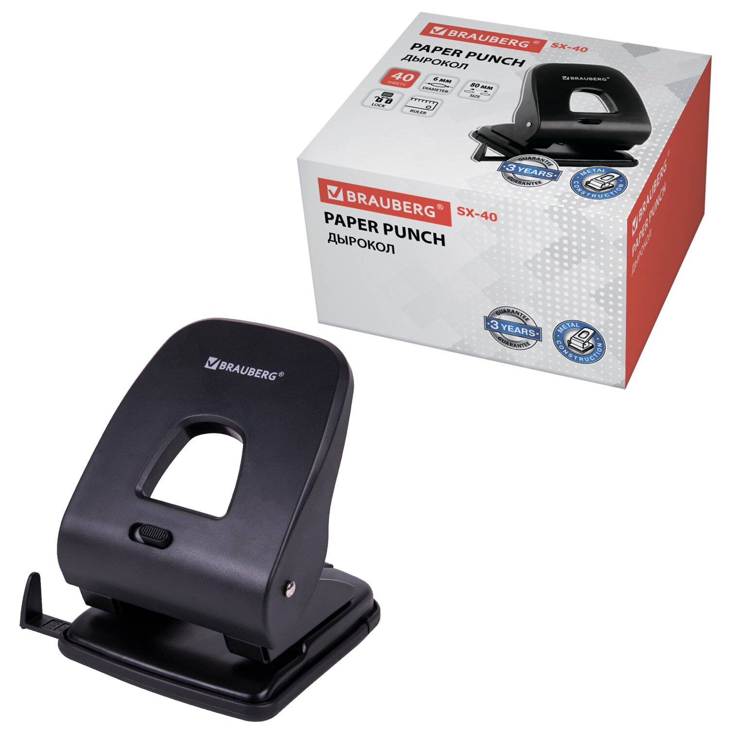 Дырокол BRAUBERG "SX-40", до 40 листов, черный, 229695